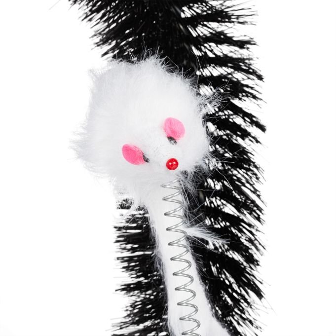 Вградената играчка мишка стимулира интереса и играта, а четките осигуряват и лек масаж, който котките харесват. В комплекта има котешка трева, която може да се постави върху тавата за привличане на по-плахи котки. Почиства се лесно, като космите се събират и изваждат от четките.