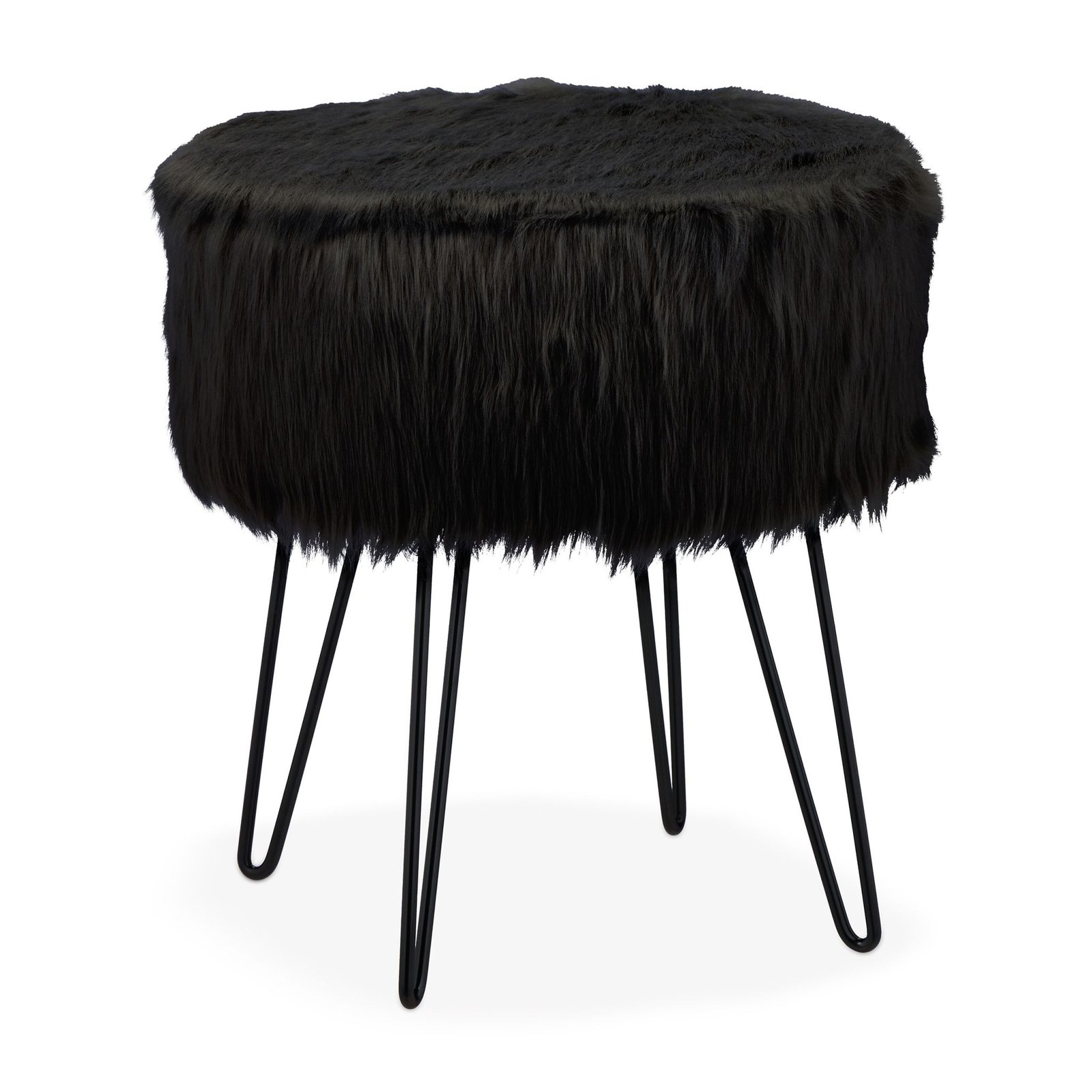 Металните крака във форма на фиба правят табуретката стабилна и визуално интересна. Може да се използва като табуретка към диван, подложка за крака или табуретка за гримиране. Сглобяването е лесно — трябва само да се завият краката.