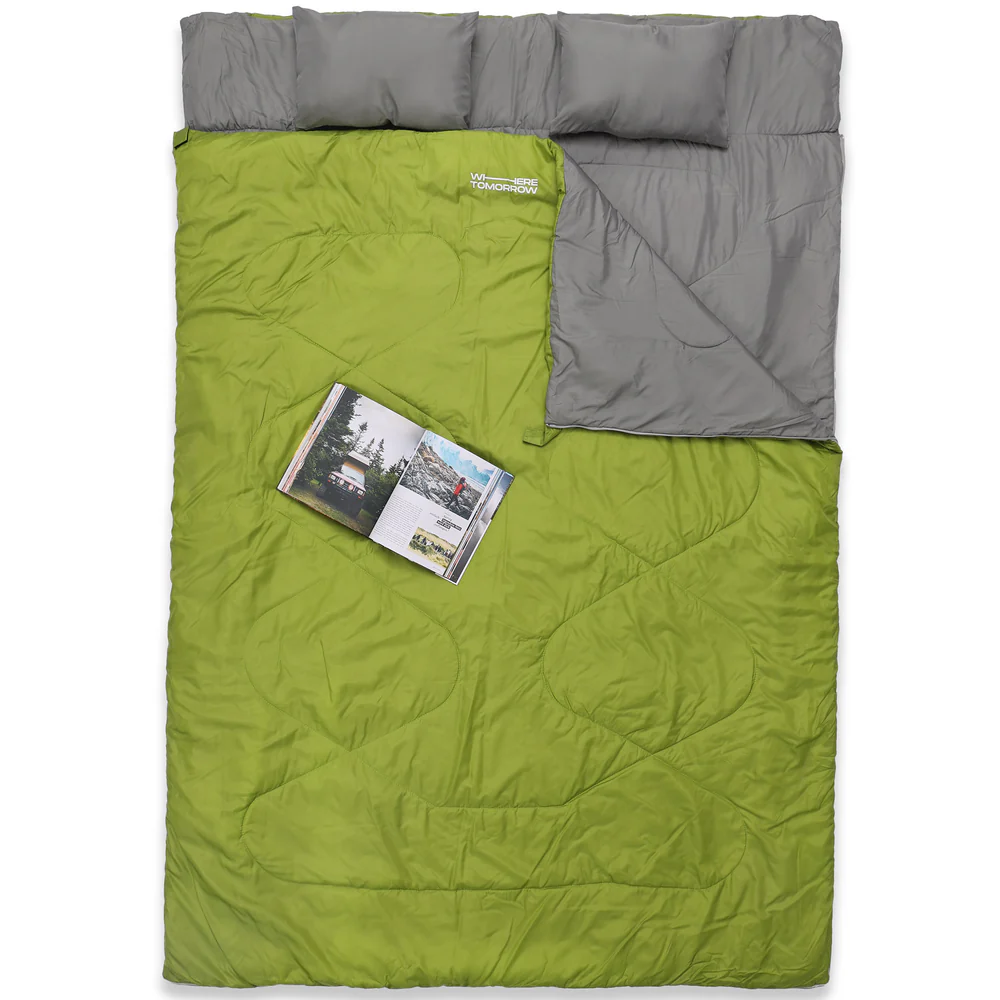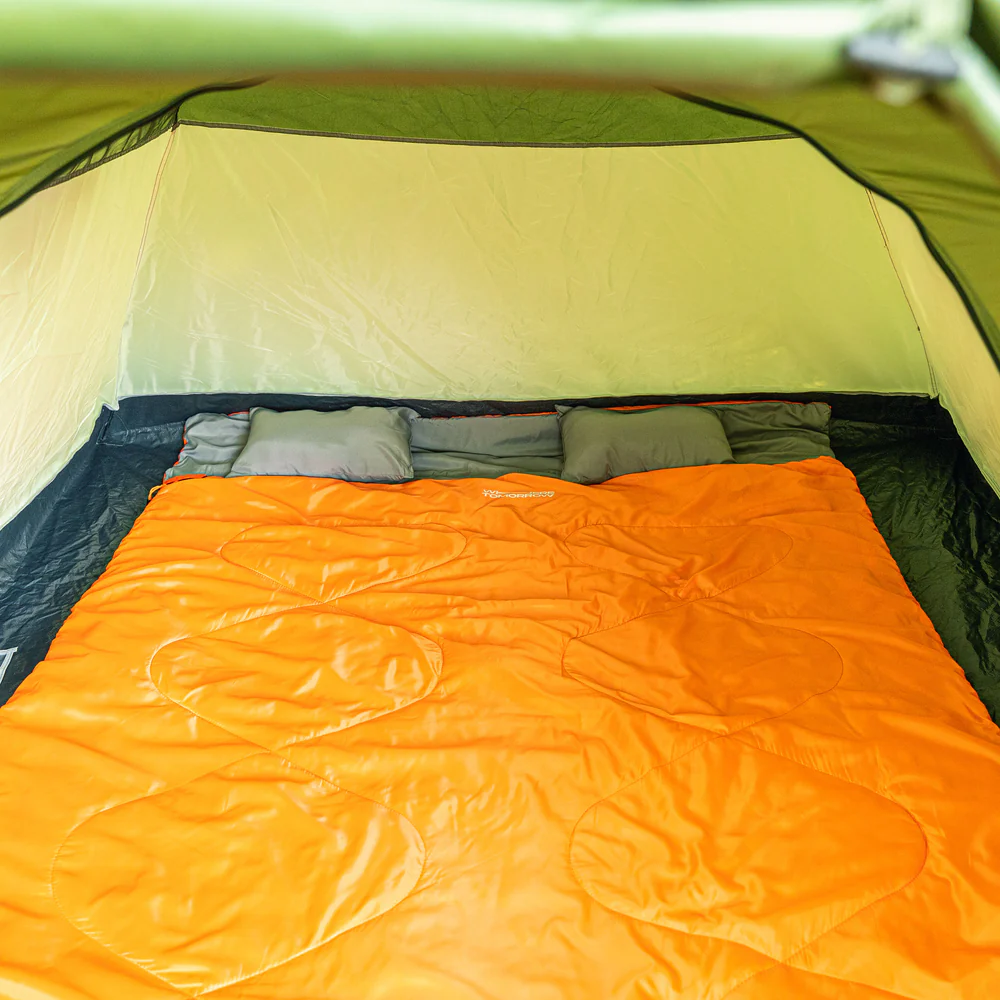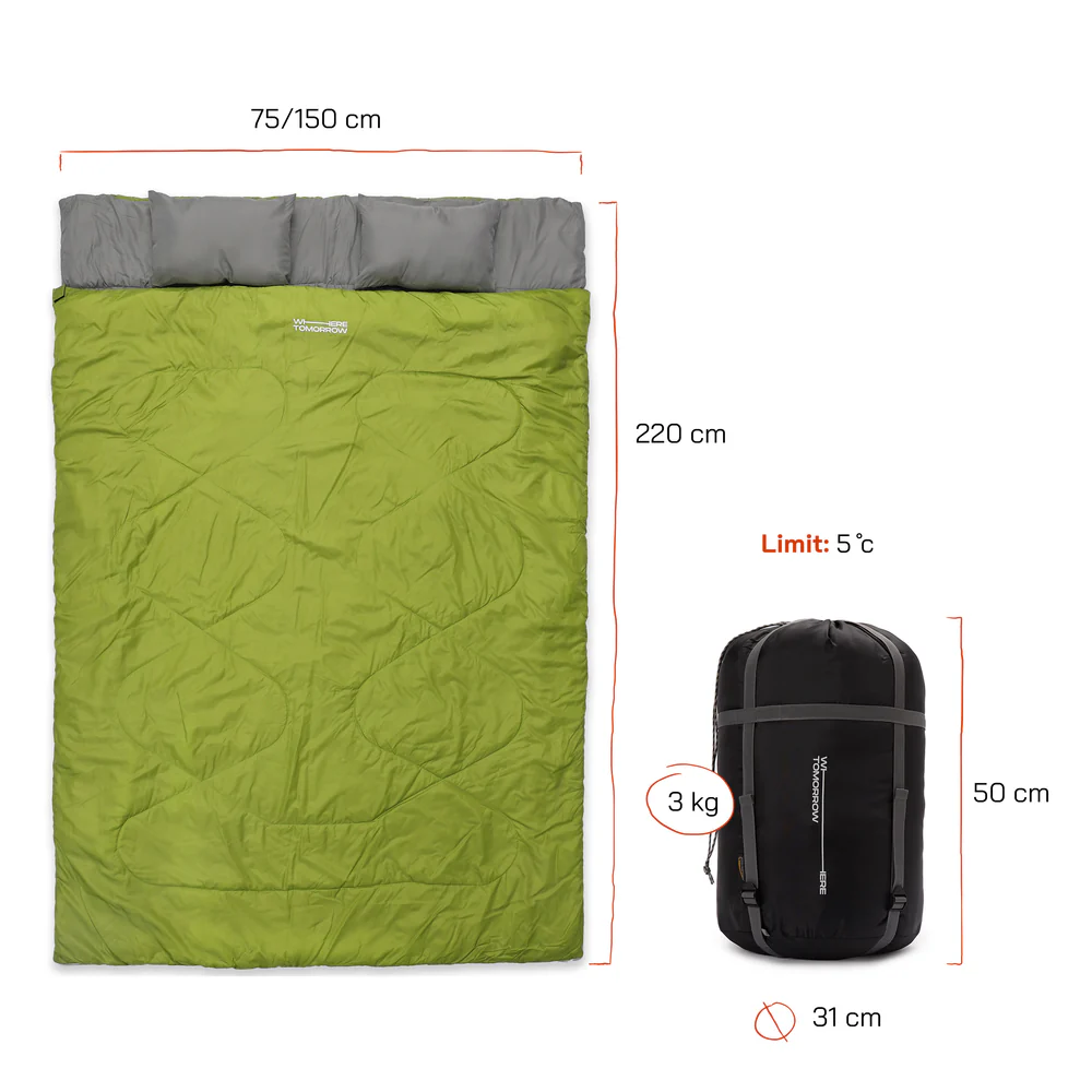 Двойният спален чувал е удобен избор за къмпинг, пътувания и нощувки на открито. С размер 190 x 150 cm предлага достатъчно пространство за двама души или комфорт за един човек.