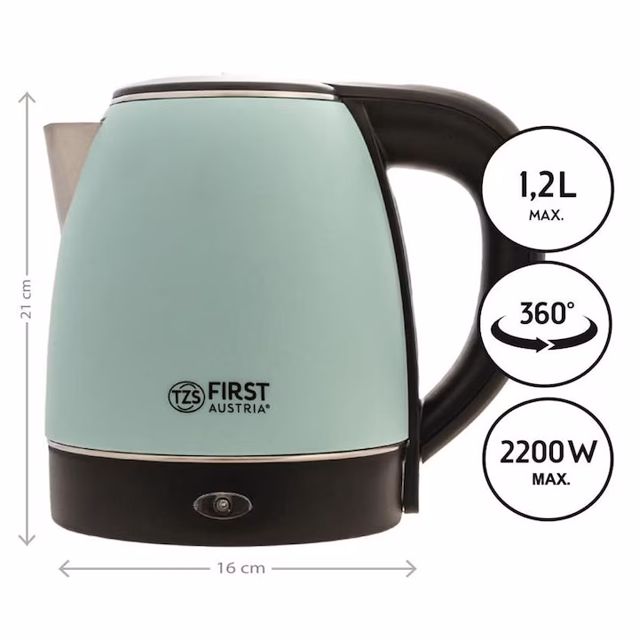Електрическата кана с капацитет 1,2 литра е практичен помощник за всеки дом или офис. Мощността от 1850–2200 W осигурява бързо кипване на водата, а скритият нагревателен елемент улеснява почистването и удължава живота на уреда.