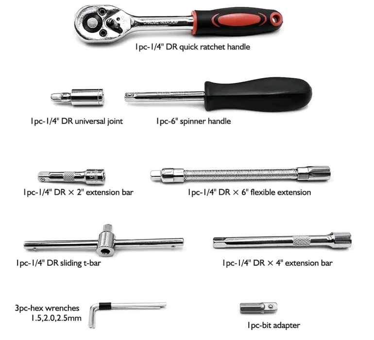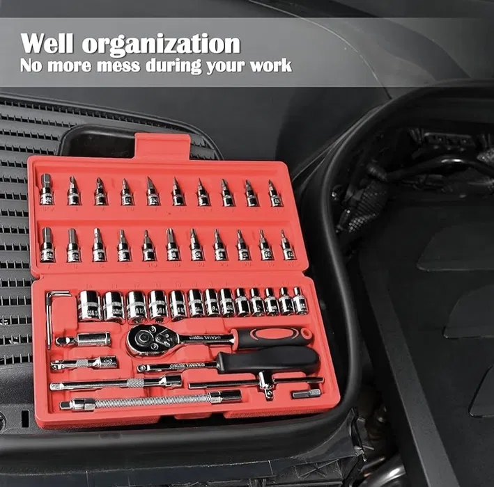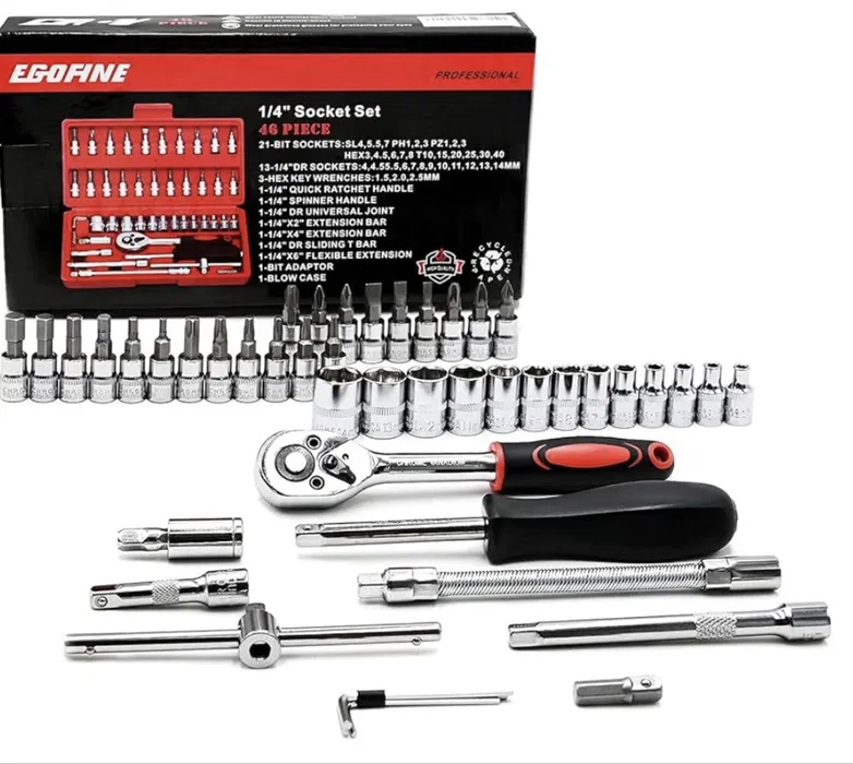 Открийте професионалния комплект инструменти, който ще превърне всеки домашен ремонт в лесно приключение! С 46 части, този комплект ви дава пълна свобода да работите бързо, прецизно и с максимално удобство.