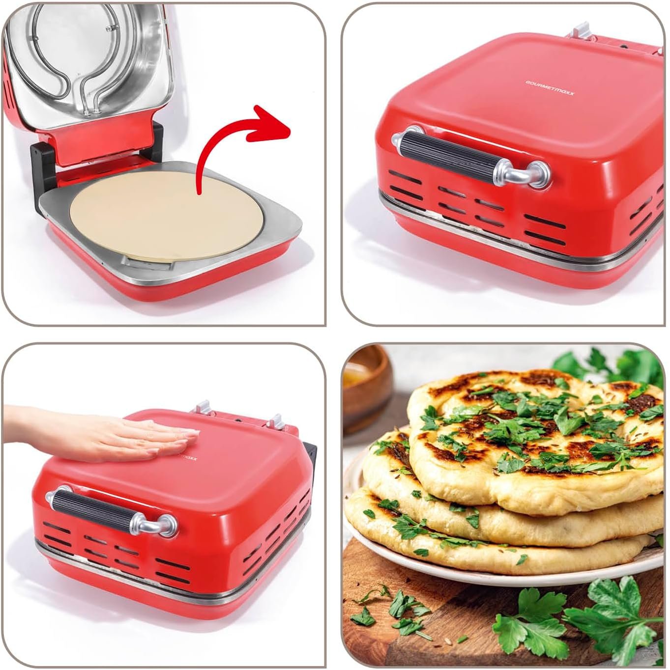 Pizza Flash: хрупкаво удоволствие за минути – пригответе вкусни пици за нула време – С нашата фурна за пица GOURMETmaxx Maker ще получите хрупкава и сочна пица за 3-4 минути, благодарение на температурата до 400 °C.