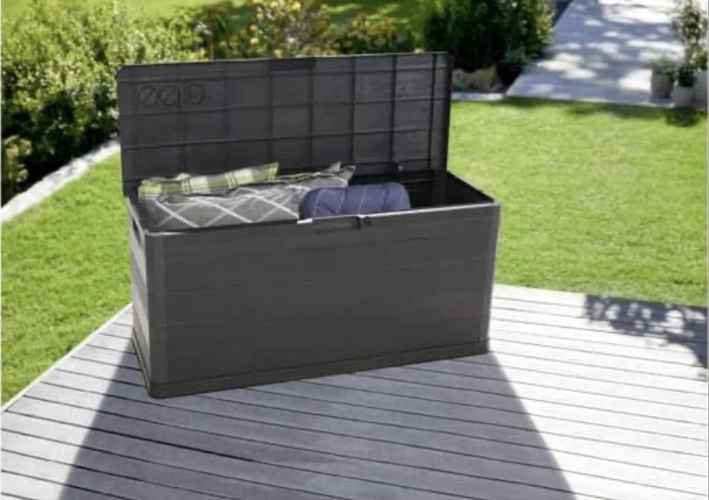 Кутията за съхранение Liverno Home Garden в тъмносиво е подходяща за вътрешна и външна употреба.