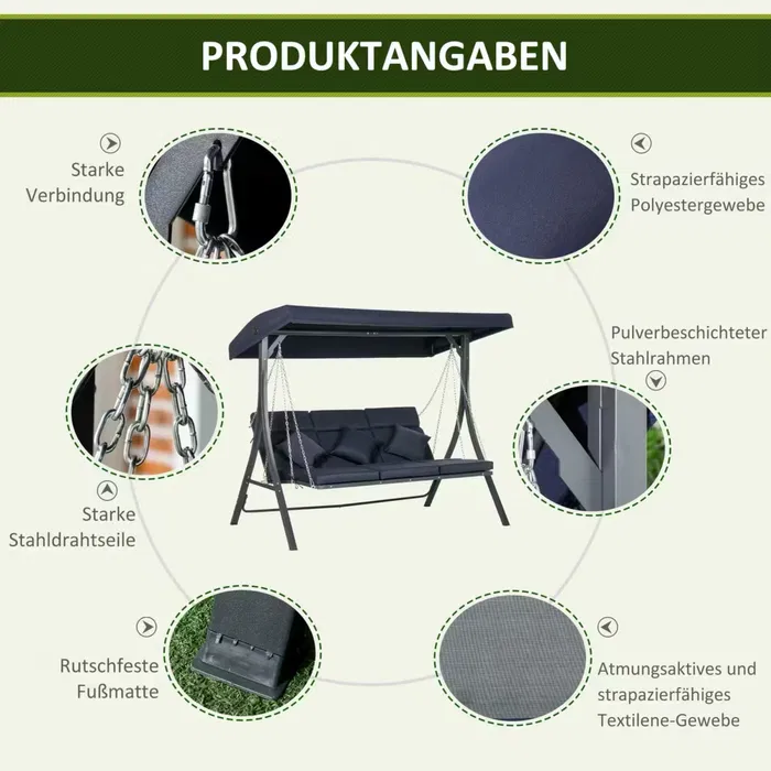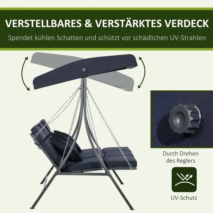 Открийте крайната градинска почивка с луксозната люлка Outsunny XXL – вашето лично убежище за максимален комфорт и релаксация под открито небе. Насладете се на идеалното съчетание от стабилност, удобство и стил, което ще преобрази вашето открито пространство.