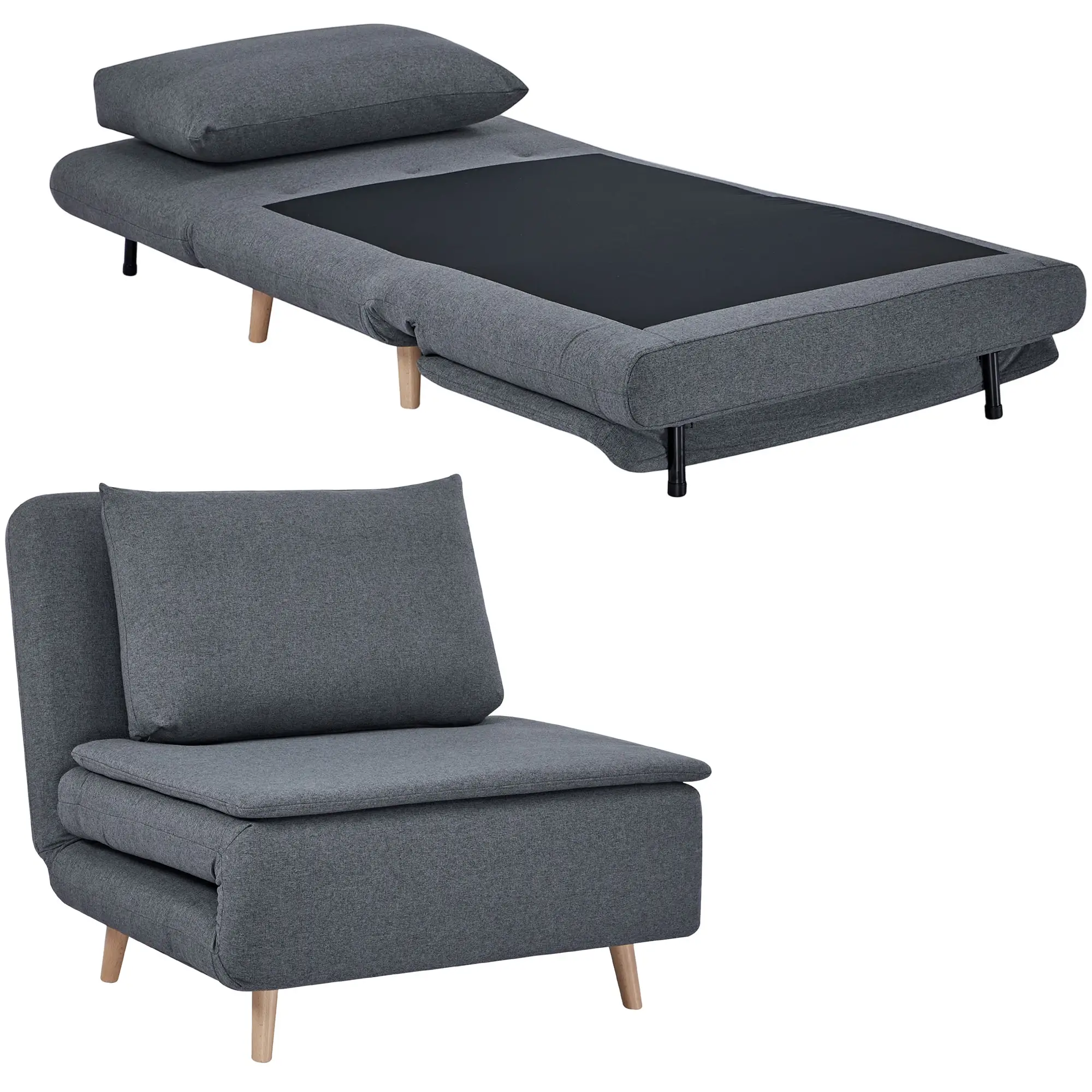 Фотьойл HOMCOM 3-в-1 с функция за легло е практична мебел, която съчетава комфорт и функционалност. Благодарение на механизма клик-клак може лесно да се превърне във фотьойл, шезлонг или удобно легло за гости.