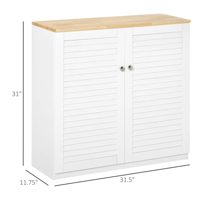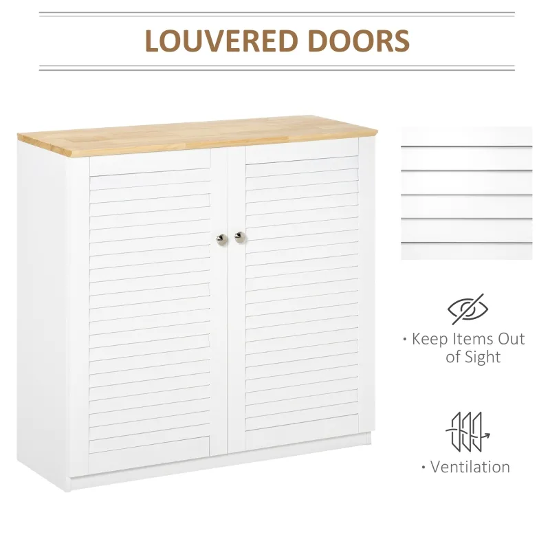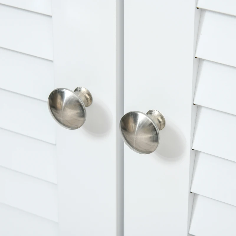 Открийте идеалното решение за съхранение с този елегантен HOMCOM кухненски шкаф! Неговите стилни жалузийни врати не само пазят вашите предмети, но и добавят модерен акцент към всяко помещение.