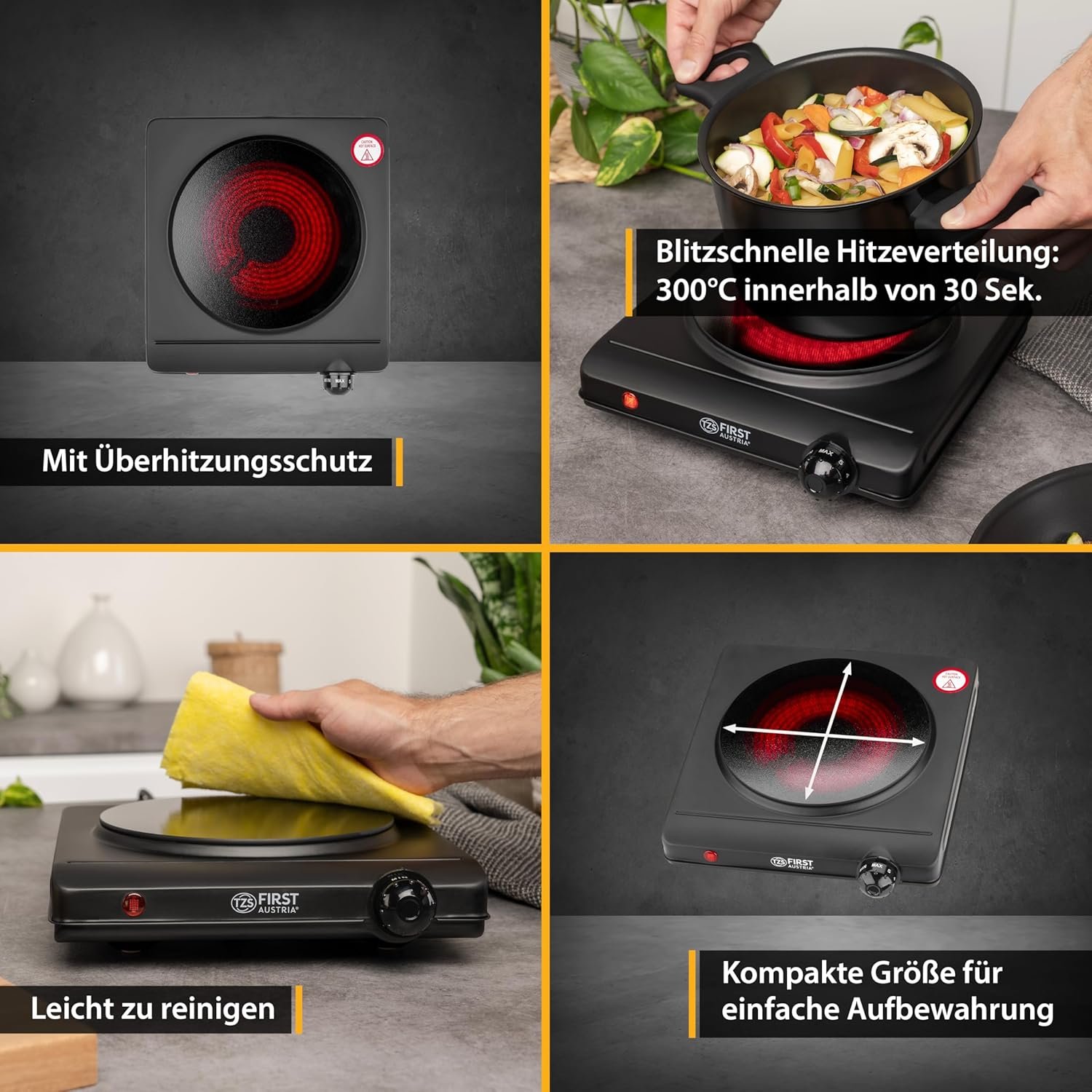 Тази инфрачервена стъклокерамична котлона на TZS First Austria е практично решение за мобилно готвене.
