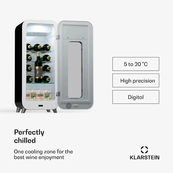 Хладилник за напитки и вино Klarstein Shirley 15 Uno ще придаде на вашето вино изключителен блясък и ще привлече вниманието на всяко място.