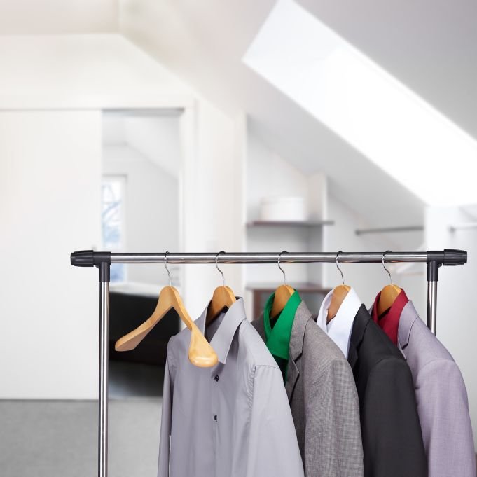 Широките рамене запазват формата на сакото и предотвратяват появата на гънки. Масивната конструкция издържа и на по-тежки зимни палта. Въртящият се на 360° кука дава свобода при подреждането в гардероба. Благодарение на изчистения дизайн дрехите ви изглеждат спретнати и винаги готови за обличане.