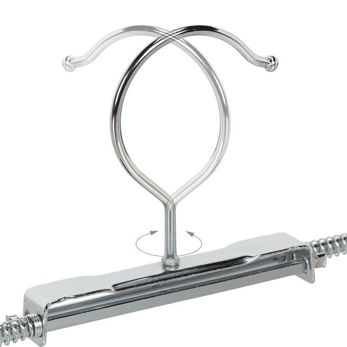 Щипките фиксират плата равномерно и предотвратяват мачкане, а антиплъзгащото покритие спира дрехите да се свличат. Универсалният дизайн позволява закачане на панталони, поли и дънки, като закачалките заемат минимално място. Куката се върти на 360°, което улеснява подреждането, а регулируемата ширина ги прави подходящи за различни размери дрехи.