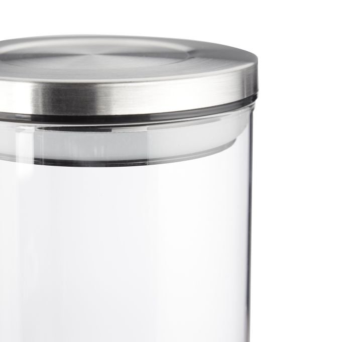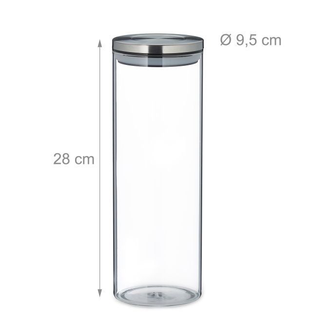 Подходящи за паста, мюсли, леща, ориз, ядки и други сухи храни. Прозрачният дизайн улеснява контрола на количествата, а капаците от матирана неръждаема стомана осигуряват херметично затваряне, което запазва аромата и свежестта на съдържанието. Елегантната комбинация от стъкло и инокс подхожда на всяка модерна кухня.