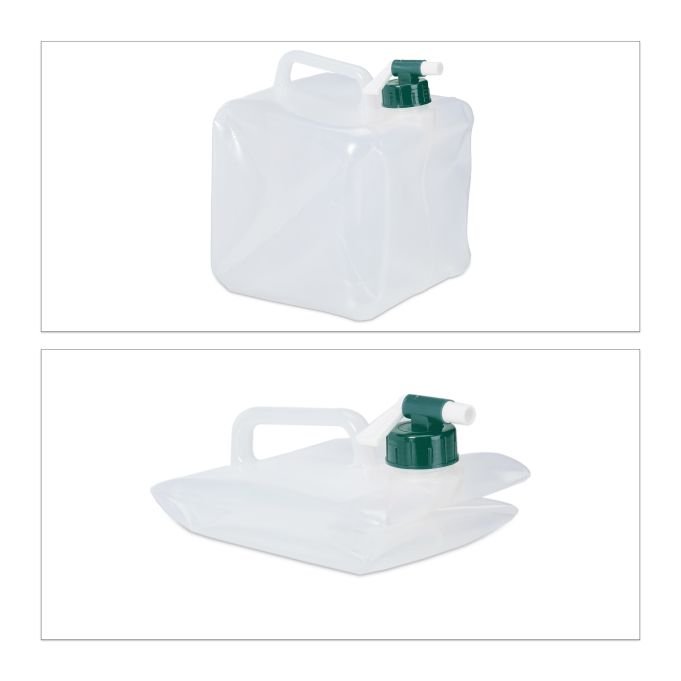 Всеки съд разполага с въртящо се кранче за лесно наливане и винтова капачка за сигурно затваряне. След употреба съдовете могат да се сгънат компактно, което улеснява съхранението в раница или багаж.