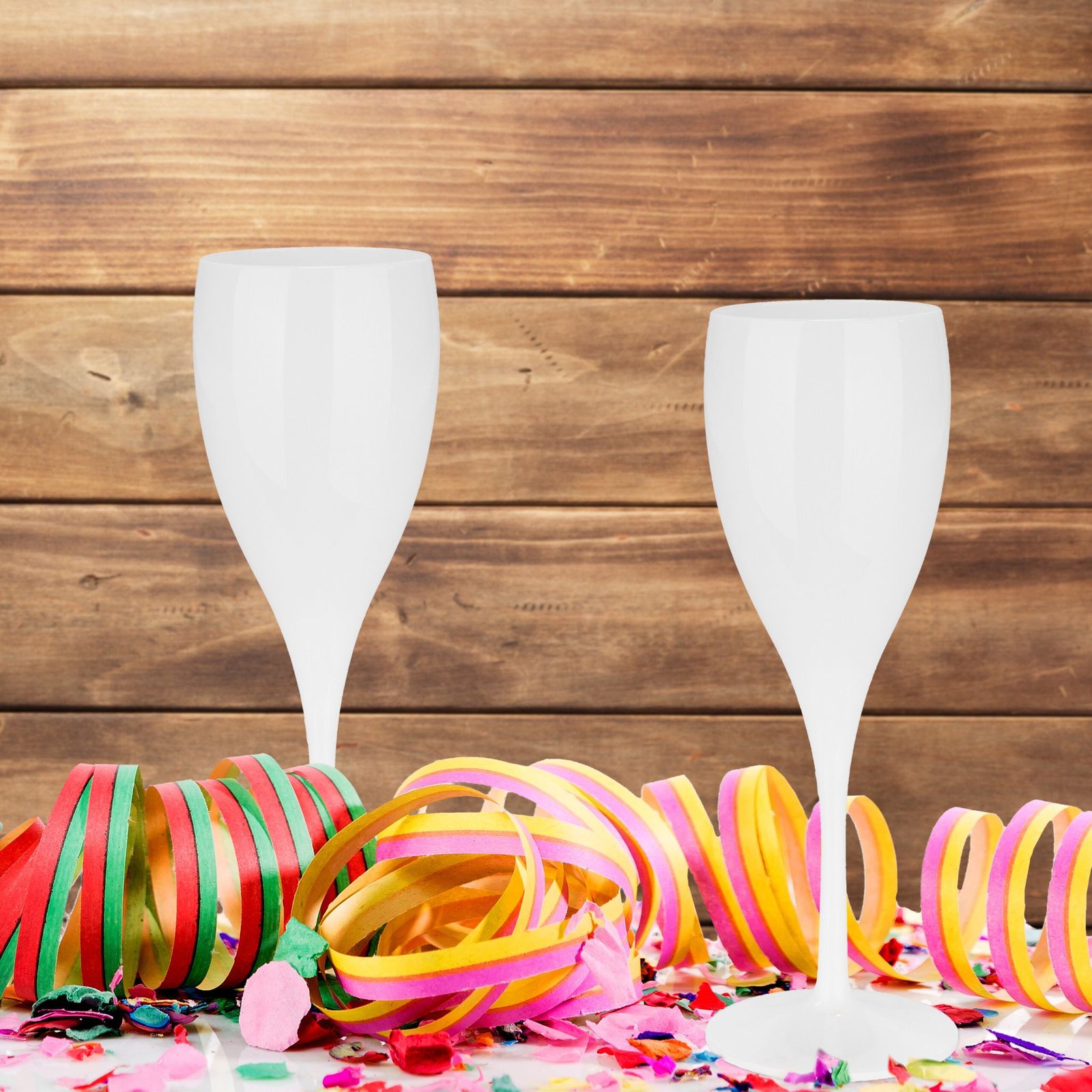Изработени от здрава пластмаса, те са безопасна алтернатива на традиционните стъклени чаши и могат да се използват многократно. Подходящи са за шампанско, просеко и пенливо вино при всякакви поводи – рождени дни, вечеря с приятели, пикник или моминско парти. Лесно се почистват в съдомиялна машина и са практично решение за всяко събитие.