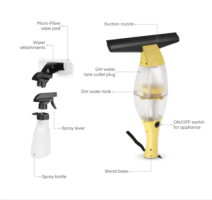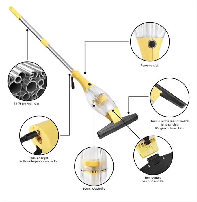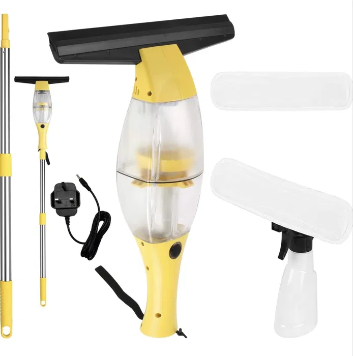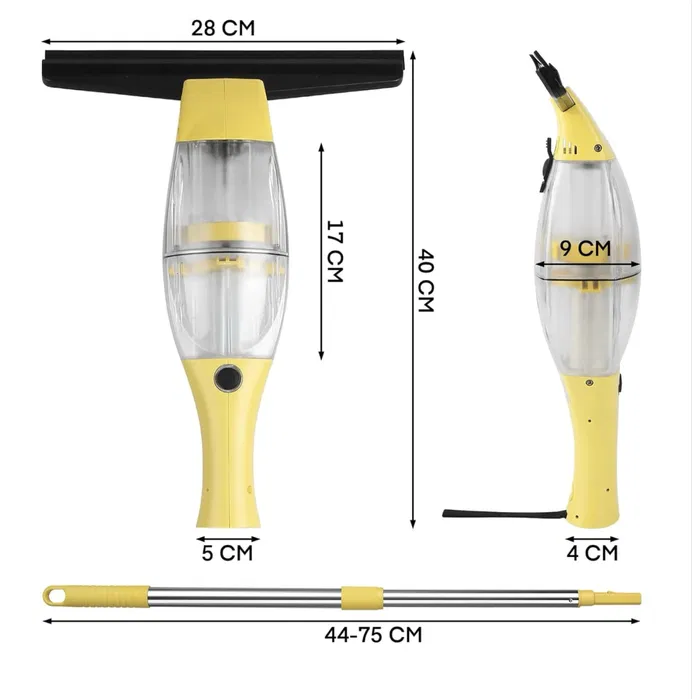 Комплектът стъклочистачка с телескопична дръжка е мощен и удобен инструмент за почистване на прозорци, плочки, огледала и стъкло. С този електрически помощник ще постигнете блестящи резултати с минимално усилие.
