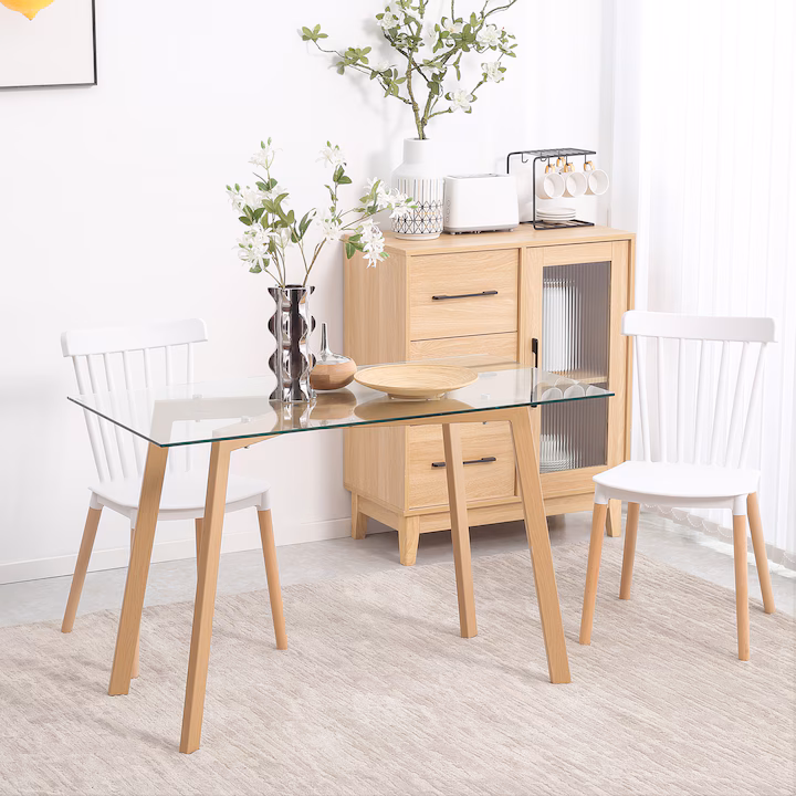 Трапезната маса HOMCOM е стилно и практично решение за модерния дом. Големият плот от закалено стъкло осигурява достатъчно пространство за хранене и събирания с близки хора, като спокойно побира до четирима души.