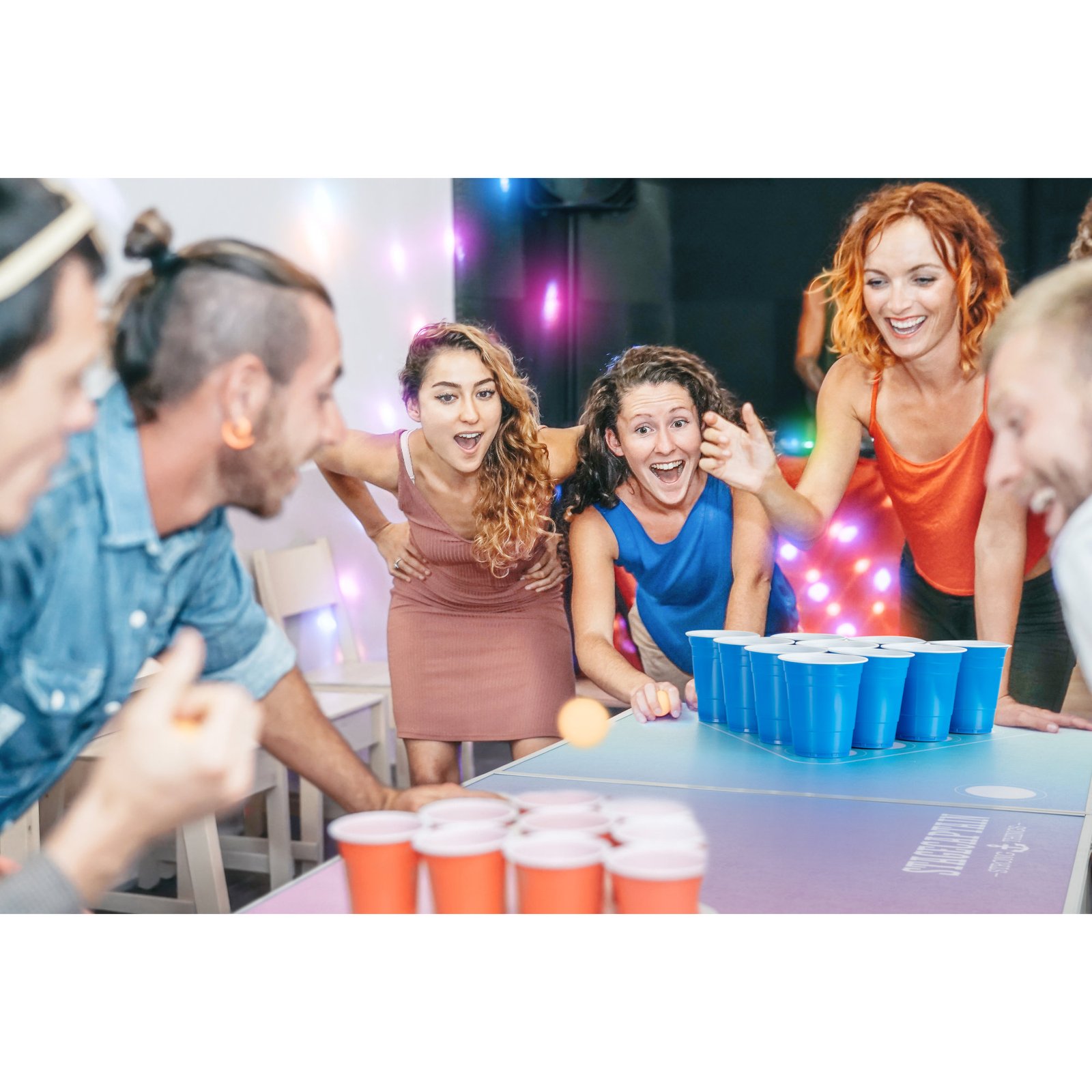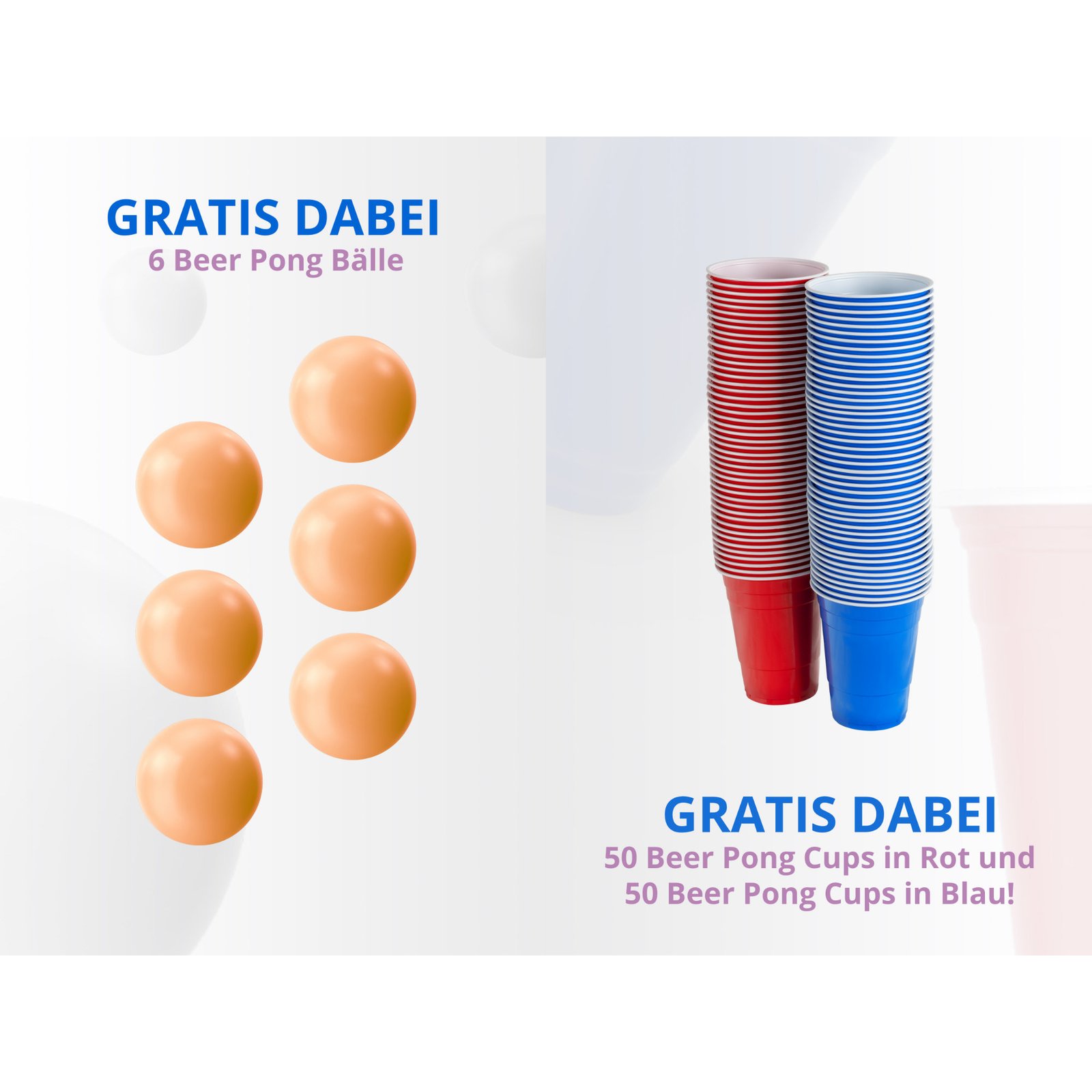 Допълнително: 50 сини чаши, 50 червени чаши, 6 топки