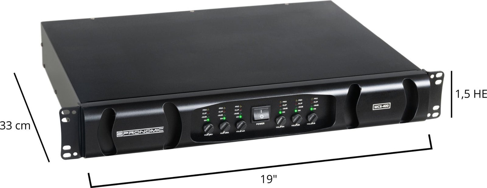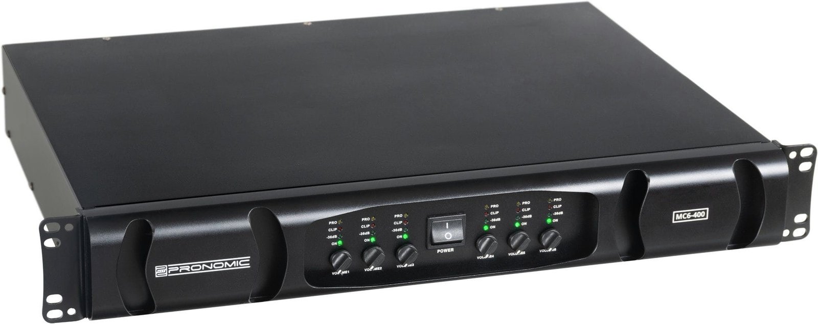 Усилвателят MC6-400 е професионално решение за озвучителни системи, подходящ за сцени, събития и мобилни инсталации.