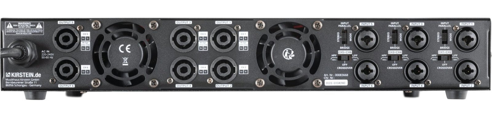 Със своята 6-канална конфигурация и висока мощност той осигурява чист и стабилен звук дори при голямо натоварване. Моделът използва клас D технология, което гарантира ефективност и по-ниско загряване. Разполага с надеждни защитни системи и охлаждане с два вентилатора, което го прави подходящ за продължителна работа. Поддържа различни режими на работа, включително мостово свързване за по-висока мощност.