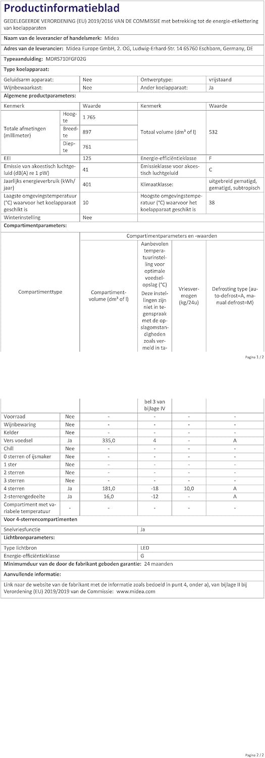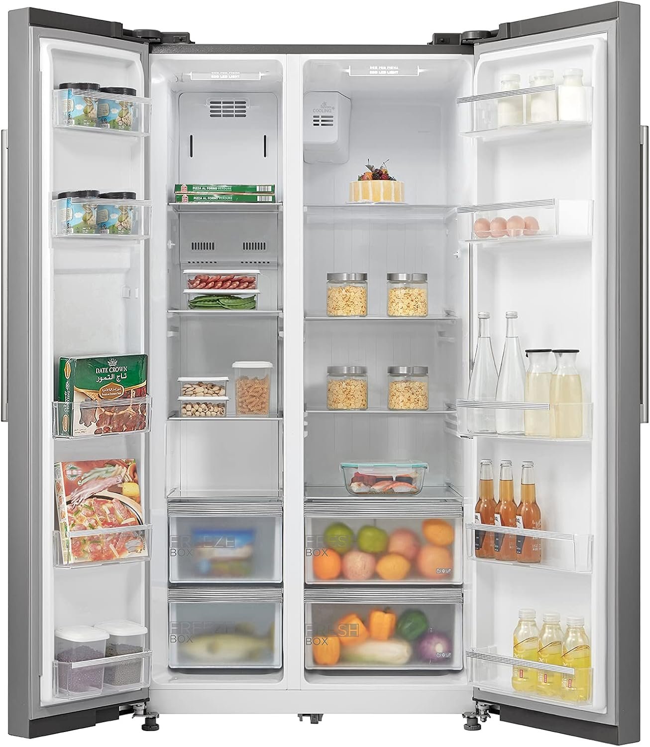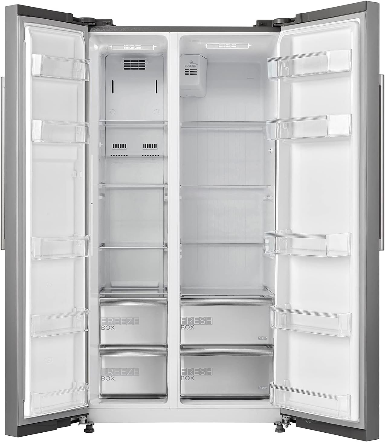 Midea MDRS710FGF02G е просторен Side-by-Side хладилник с общ нетен обем 532 литра – 335 л хладилна част и 197 л фризер. No Frost системата предотвратява образуването на лед, а Twin Control осигурява прецизно управление на температурите в двете зони.