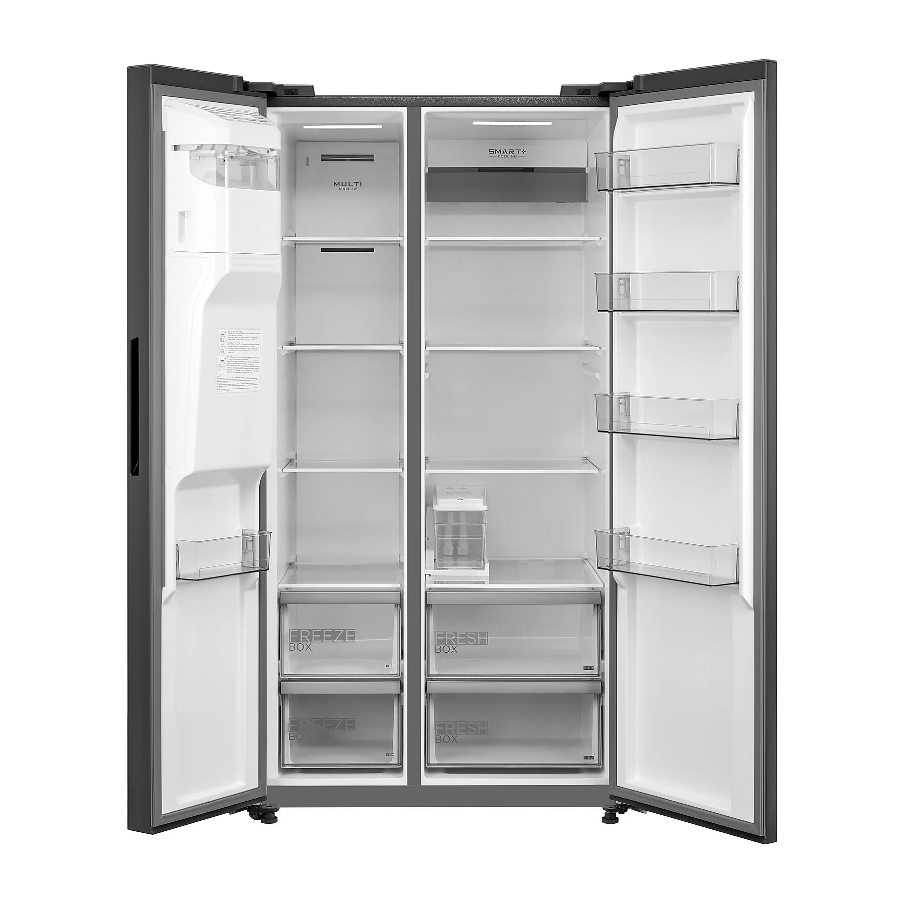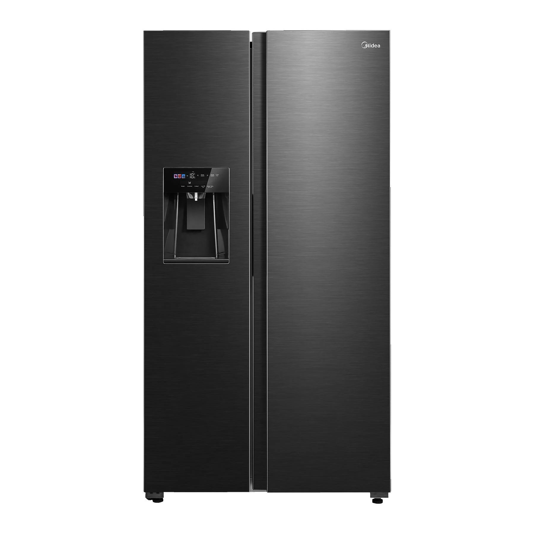 Midea MDRS761MYC45 е просторен Side-by-Side хладилник с височина 1793 мм и елегантен Dark Inox дизайн, който се вписва отлично в модерни кухни. Уредът разполага с вътрешно LED осветление, което осигурява отлична видимост във всички отделения.