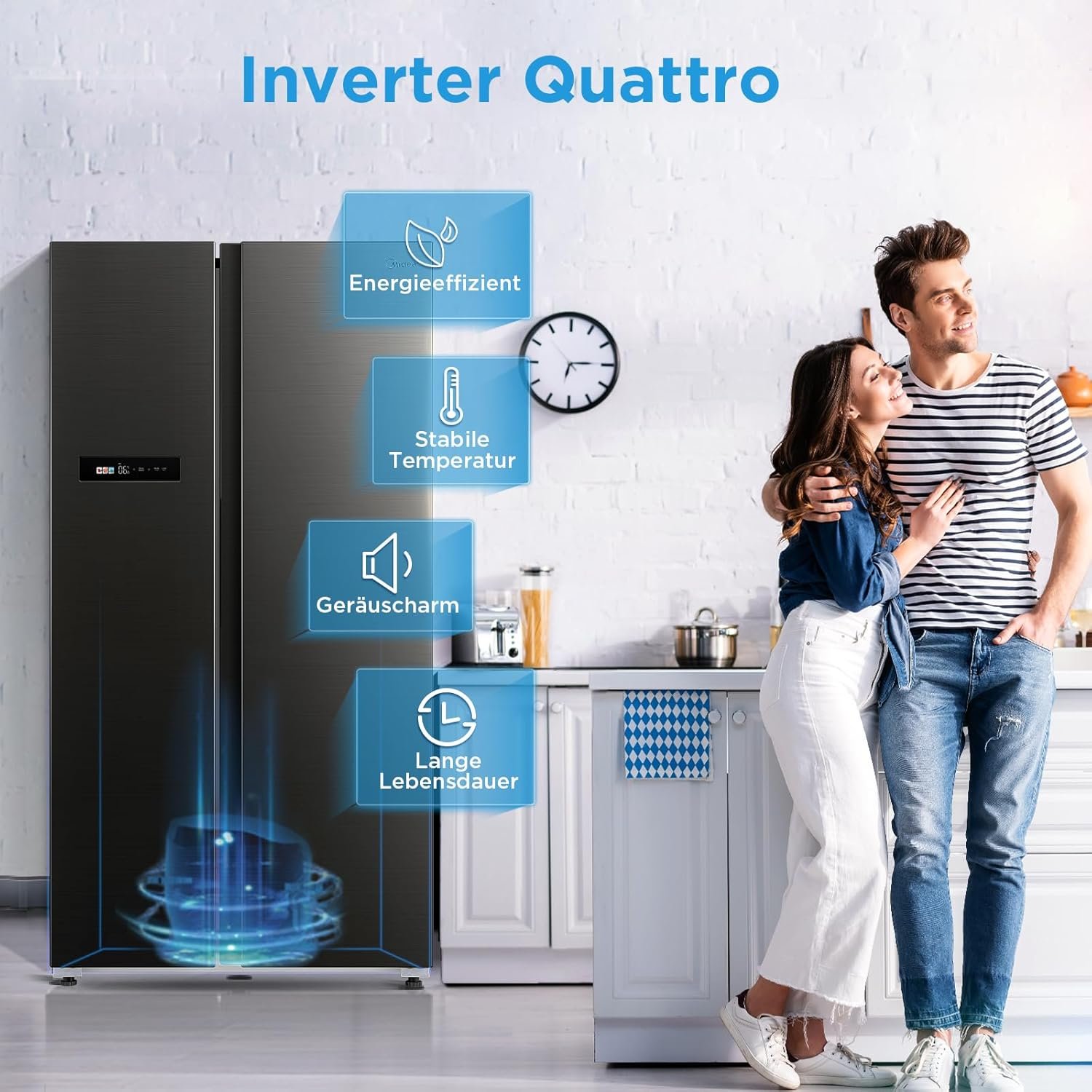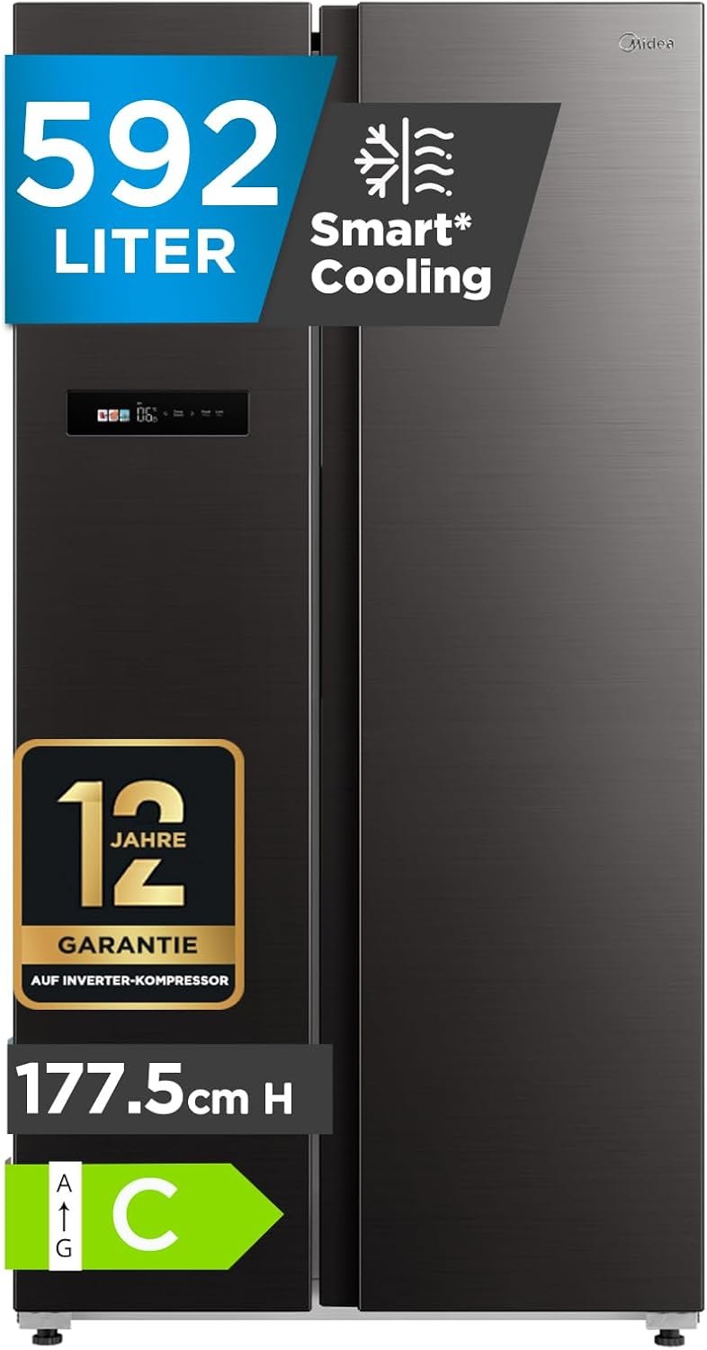 Midea MDRS791MIC28 е Side-by-Side хладилник с фризер, съчетаващ голям капацитет и модерни технологии. С No Frost система, WiFi управление и инверторен компресор, уредът осигурява стабилна температура и удобство при ежедневна употреба.