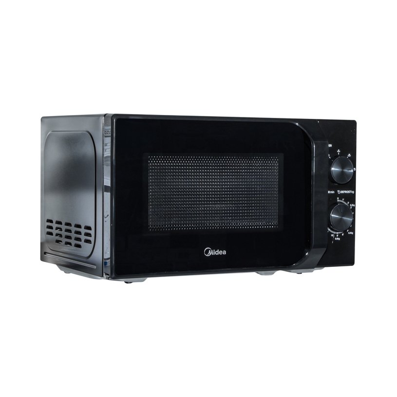 Midea MM20CF2EBK е компактна микровълнова фурна с обем 20 литра и мощност 700 W. Моделът разполага с механично управление чрез два въртящи се регулатора и е подходящ за бързо загряване, готвене и размразяване на храна. Таймерът може да се настройва до 35 минути, а функцията за размразяване улеснява обработката на замразени продукти.