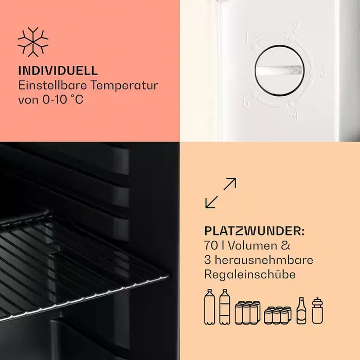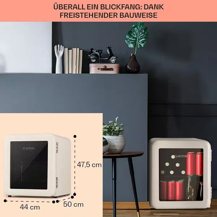 Прясно охладените лакомства са особено вкусни от стилния охладител за напитки Klarstein PopLife 48 в ретро стил от 50-те години