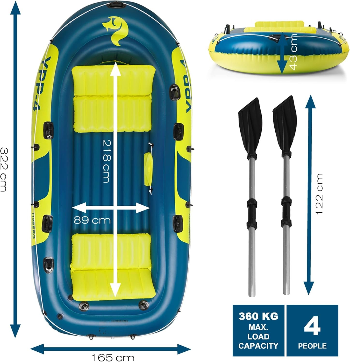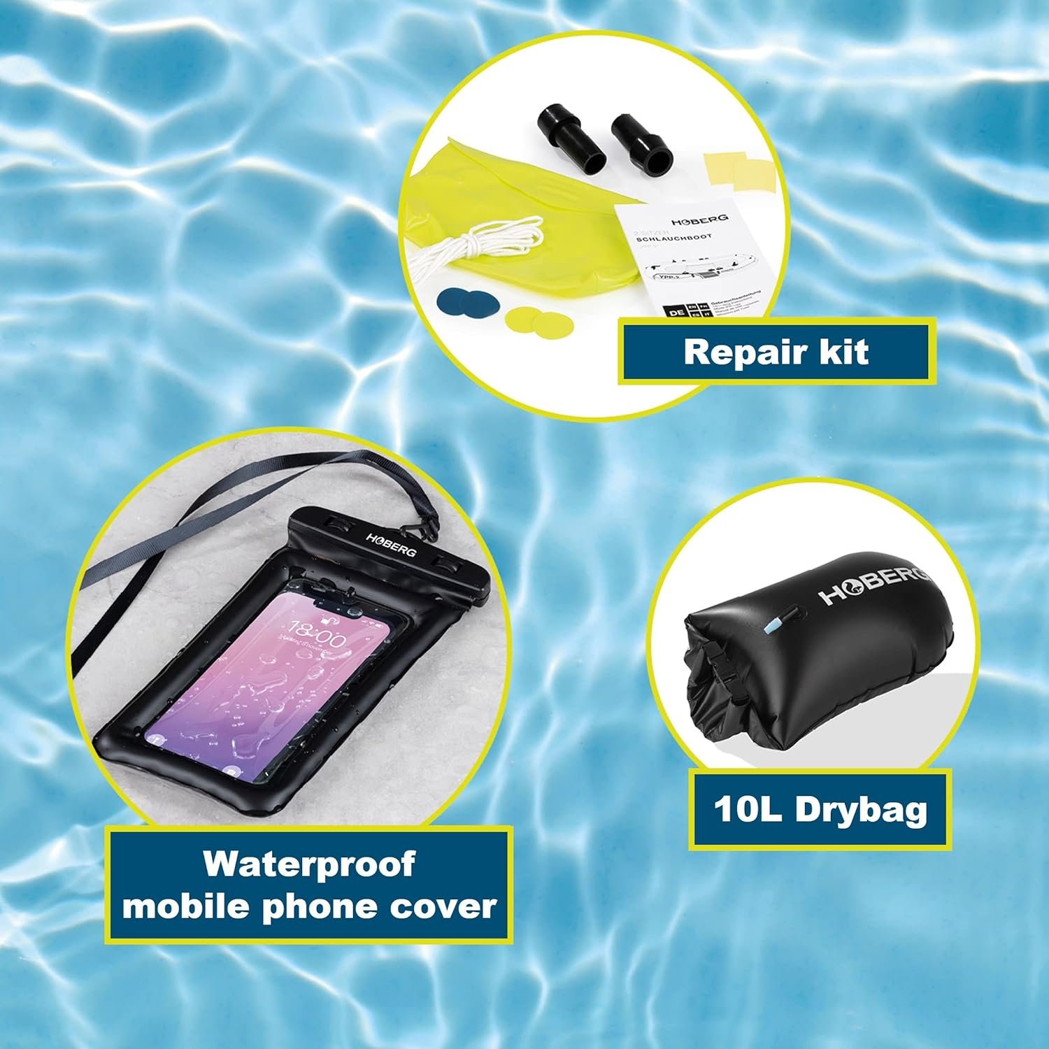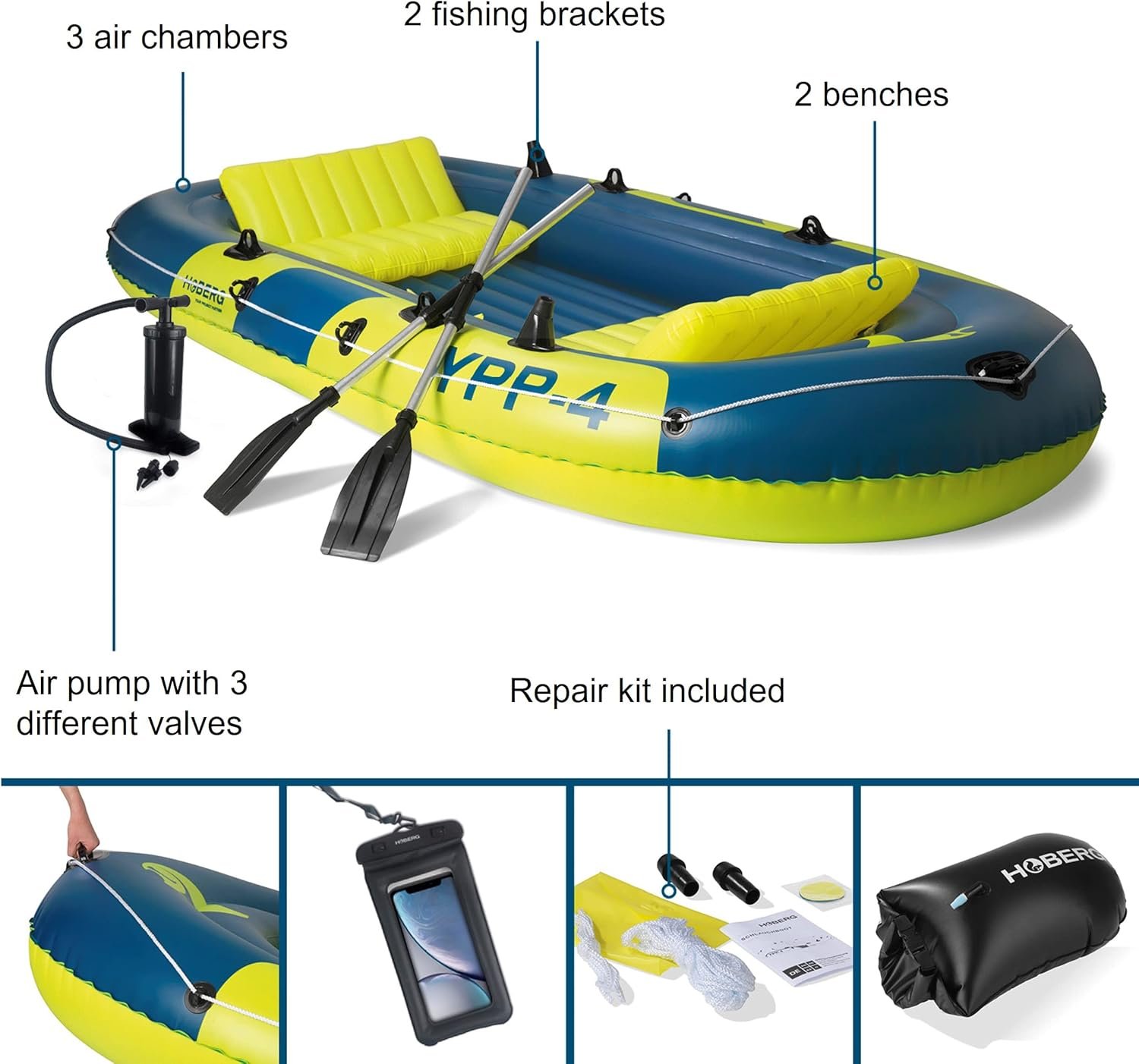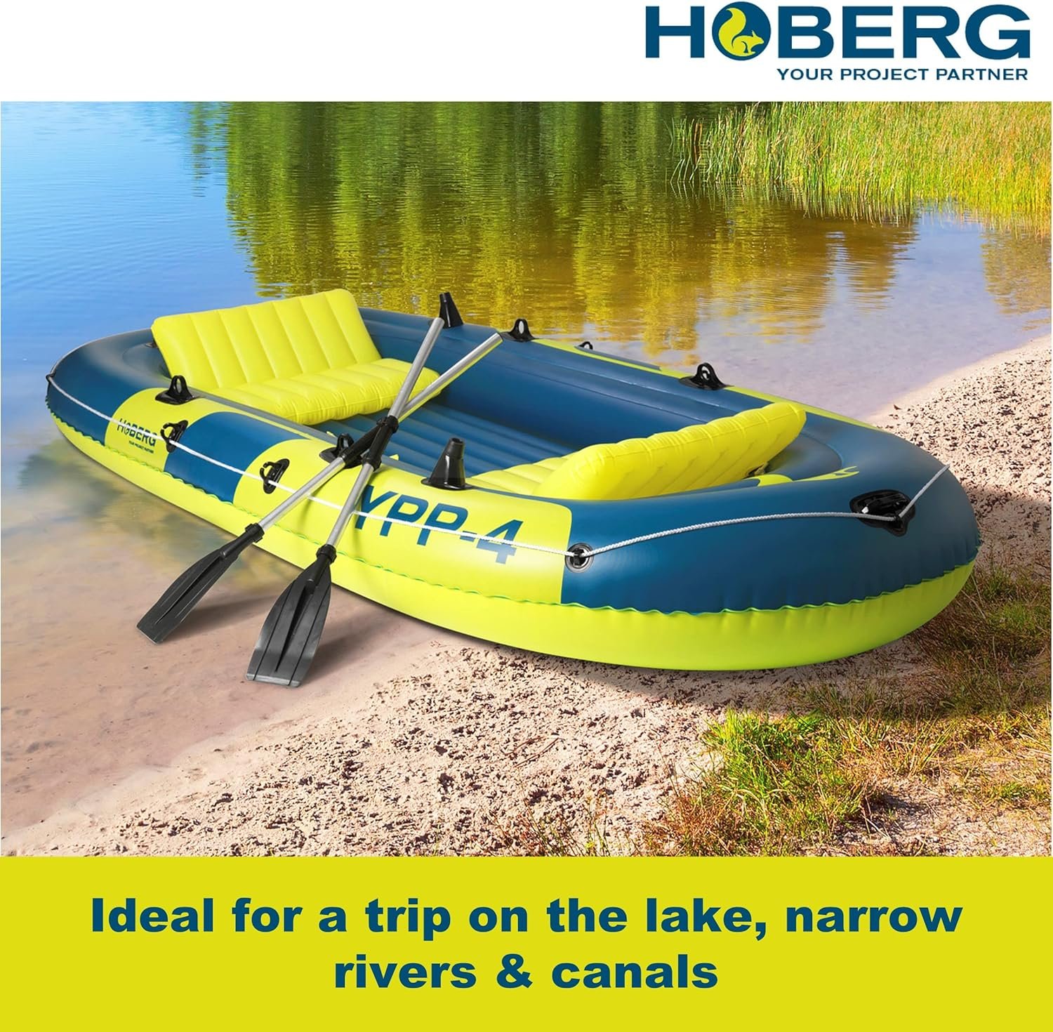 Надуваемата лодка Hoberg е подходяща за разходки, риболов и почивка край вода. Осигурява стабилност и достатъчно пространство за до четирима души.