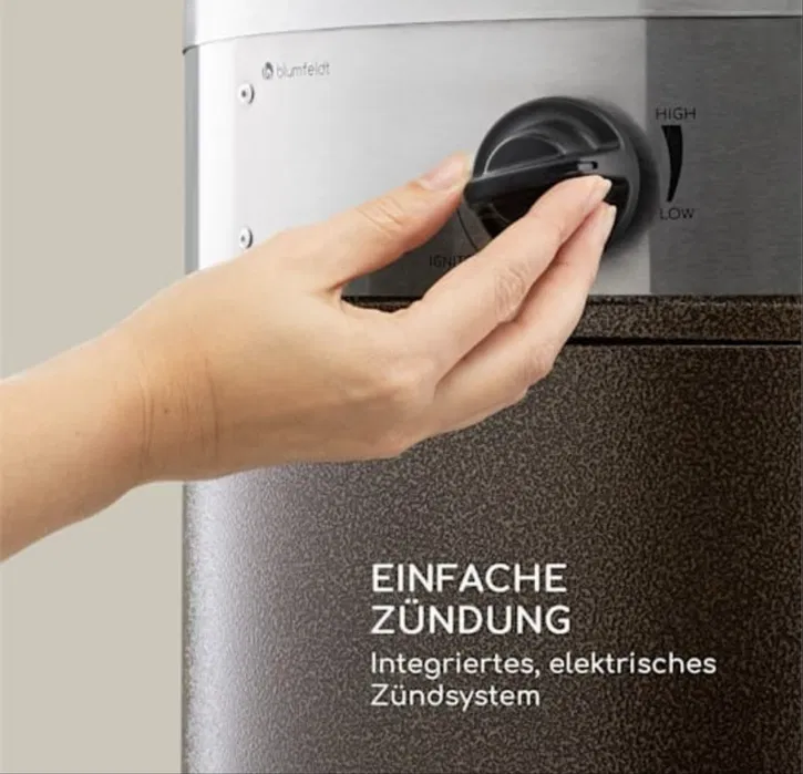 Превърнете вашата тераса в уютно убежище с Blumfeldt Goldflame Deluxe – мощен газов нагревател, който ще ви позволи да се наслаждавате на открито дори при хладно време. Създаден да затопля бързо и ефективно, този нагревател ще удължи вашия сезон на открито с лукозно лъчисто отопление.