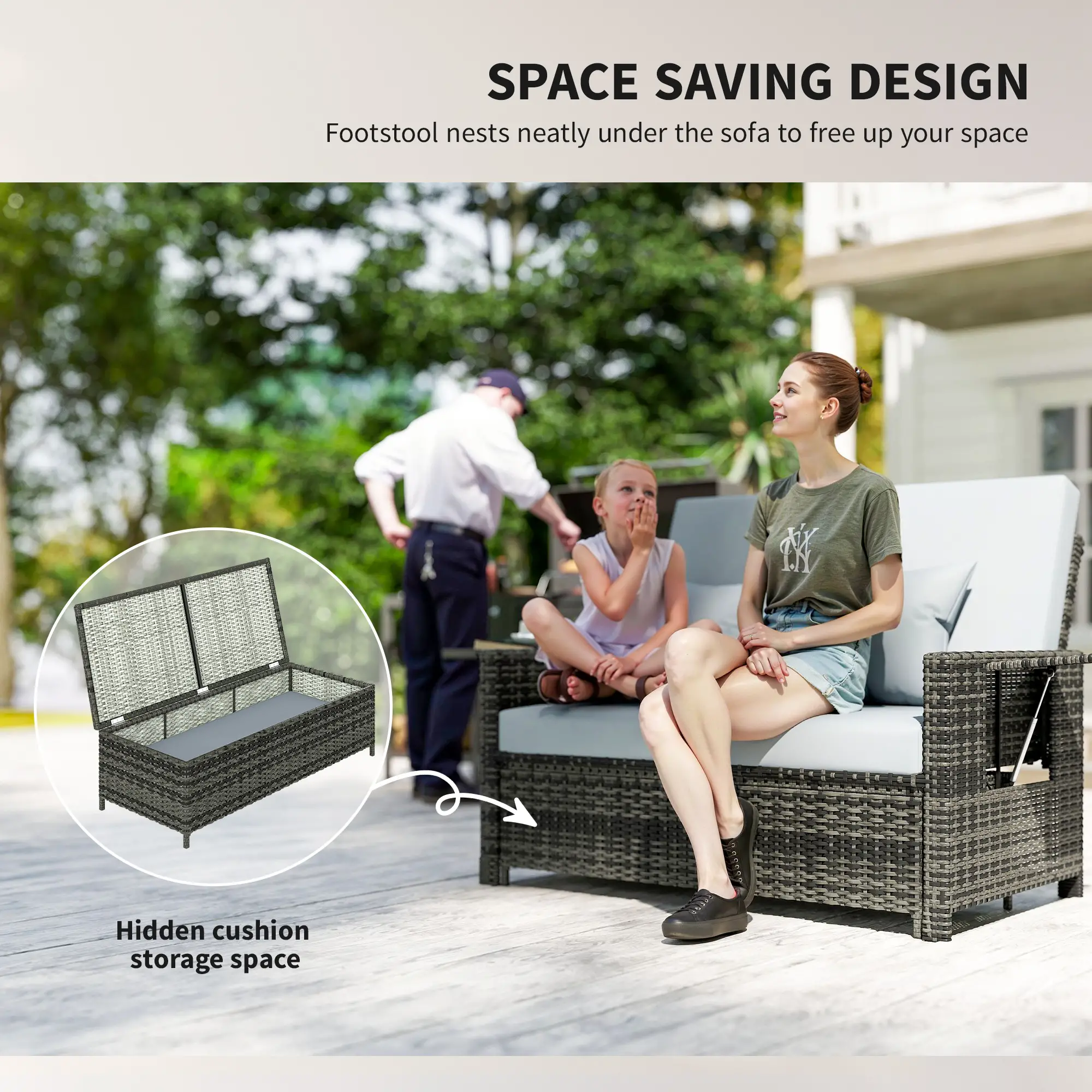 Лесно се трансформира от диван в шезлонг с табуретка, като предлага удобно място за сядане и почивка. Вграденото пространство за съхранение и компактният дизайн го правят идеален за градина, тераса или балкон.