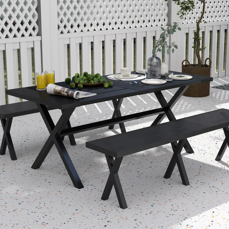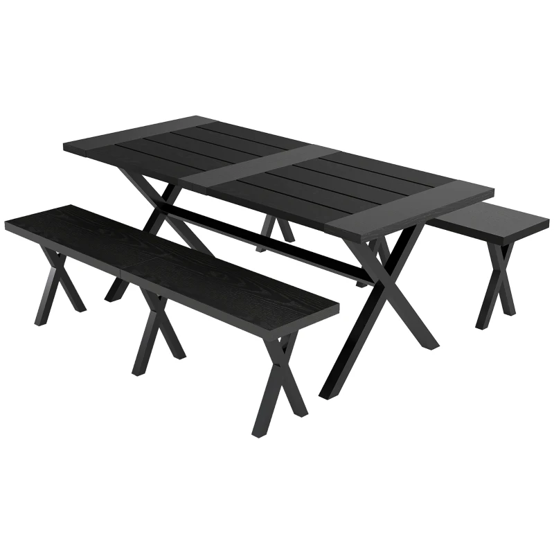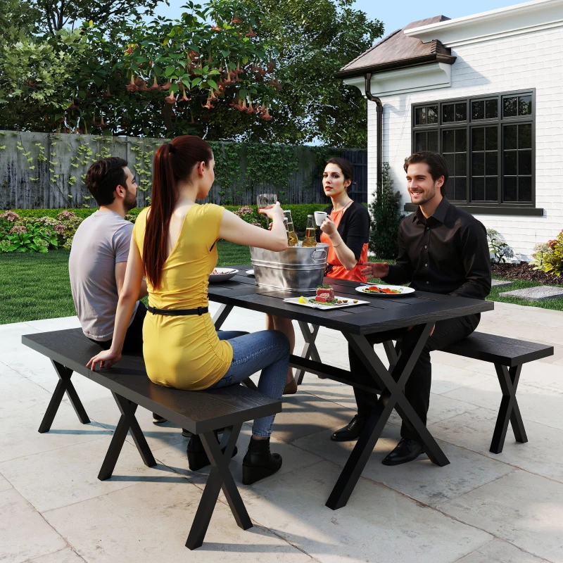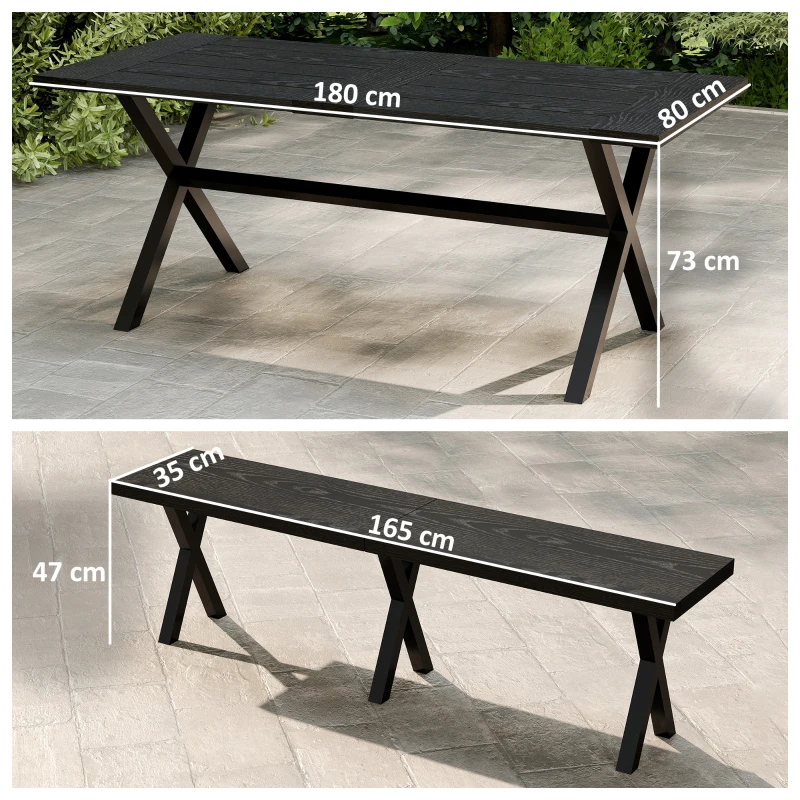 Масата с дължина 180 cm и двете пейки осигуряват удобно място за сядане на до 6 души, което го прави подходящ за семейни вечери, градински партита и летни събития.