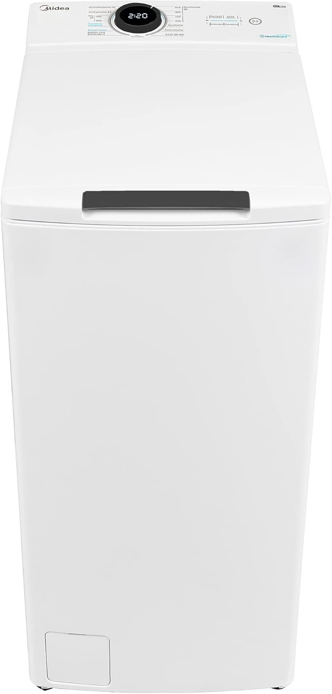 Пералната машина Midea MF100T70B-12A с горно зареждане е практично решение за дома с капацитет 7 кг и енергиен клас A. XL отварянето нагоре осигурява по-лесно зареждане и добра видимост към барабана, а мекото затваряне прави използването по-комфортно.