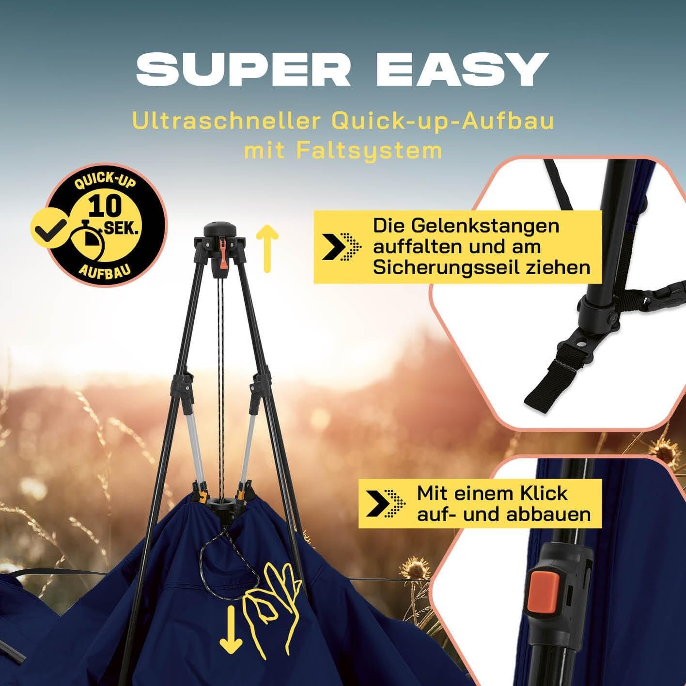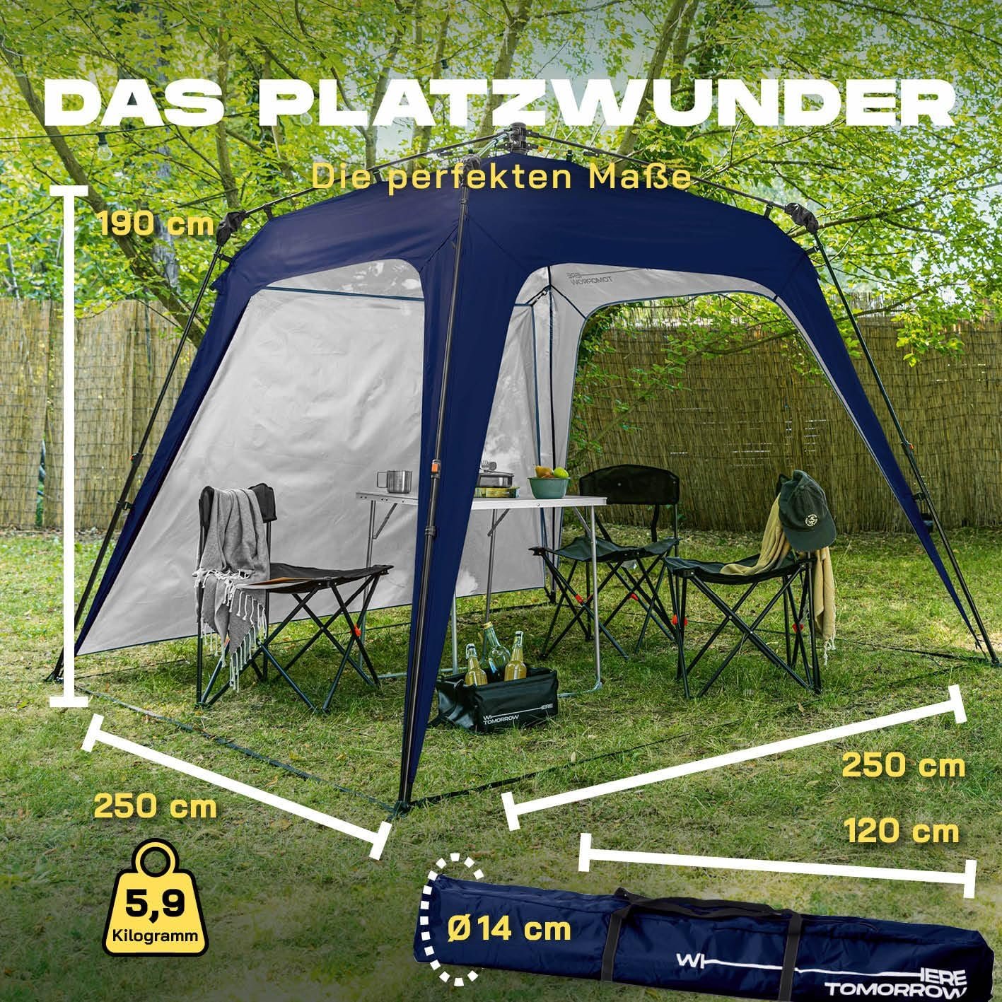 Pop-up шатрата Lumaland Where Tomorrow е практично решение за къмпинг, градина и събития на открито. Осигурява защита от слънце, дъжд и вятър и създава удобна покрита зона за почивка или събирания.
