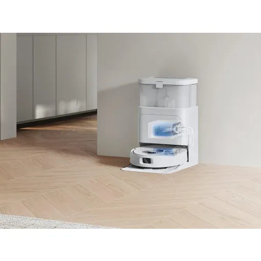 Моделът разполага с мощно засмукване до 10 000 Pa и технологии като TruEdge и OZMO Turbo. Станцията автоматично измива и изсушава моповете и събира праха, което позволява дълга работа без намеса.