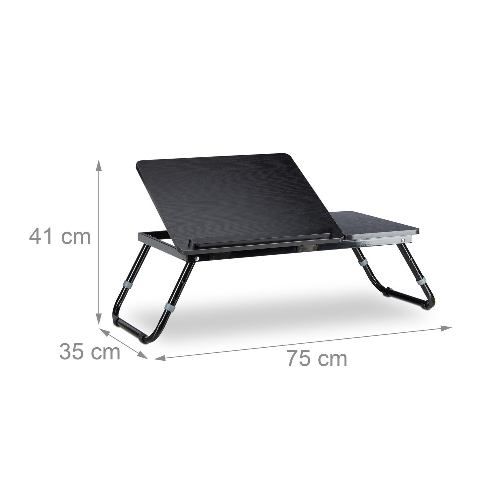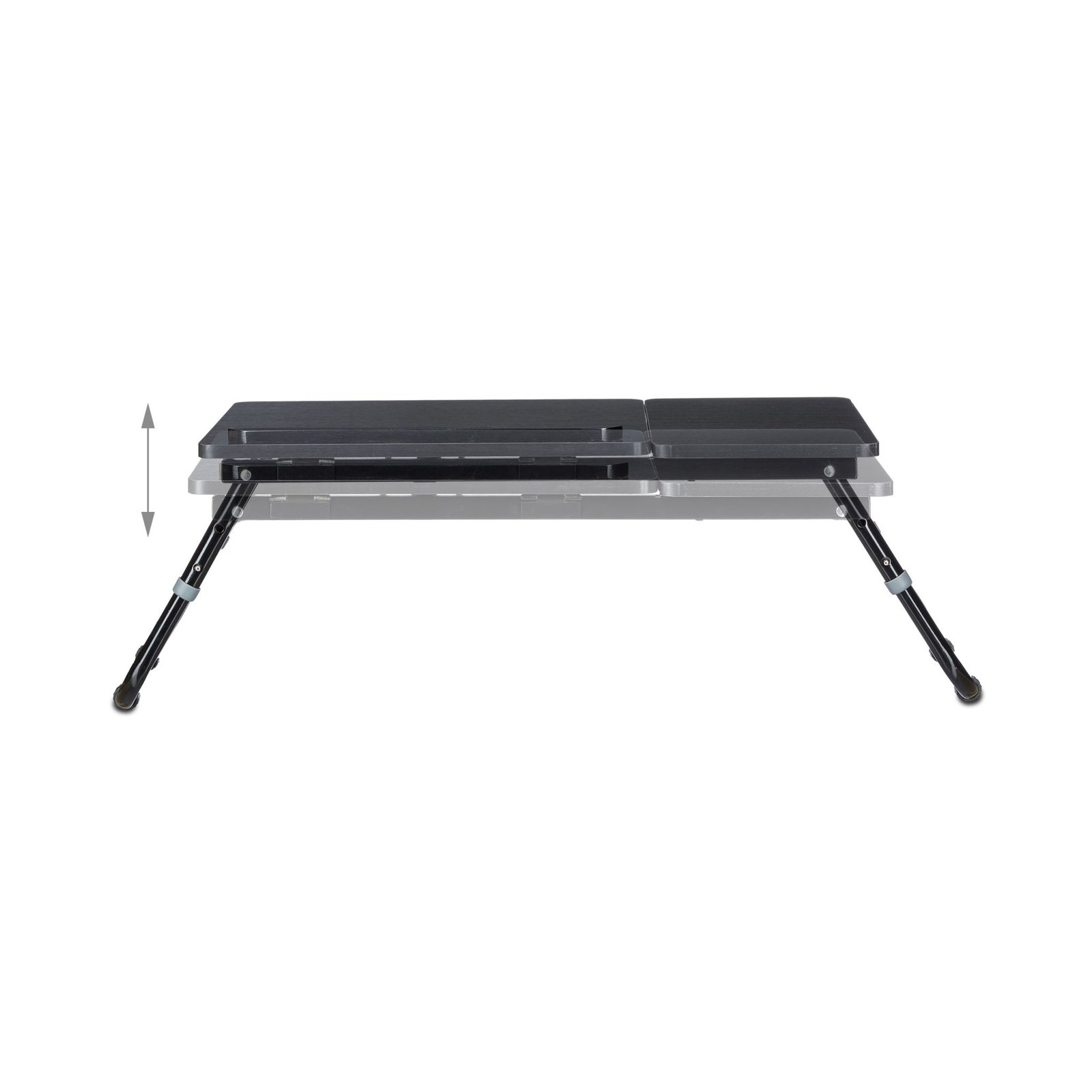 Подходяща е за лаптопи от всички размери. Повърхността може да се накланя под четири различни ъгъла, което я прави удобна и за книги или таблети. Неплъзгащата лента държи устройството стабилно. Конструкцията е лека, сгъваема и лесна за прибиране. Ако решиш да я ползваш за храна, върши работа и като класическа закусвална върху леглото.