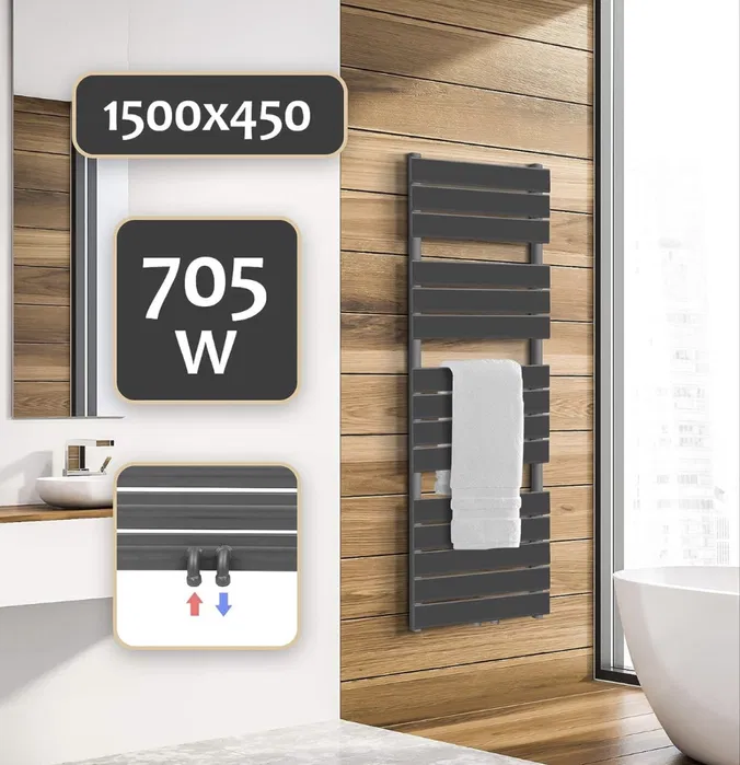 Открийте лукса на топлината и комфорта с нашия модерен радиатор за баня. Елегантен дизайн, който не само затопля помещението, но и предлага практично решение за съхранение на кърпи с вградена поставка от неръждаема стомана.