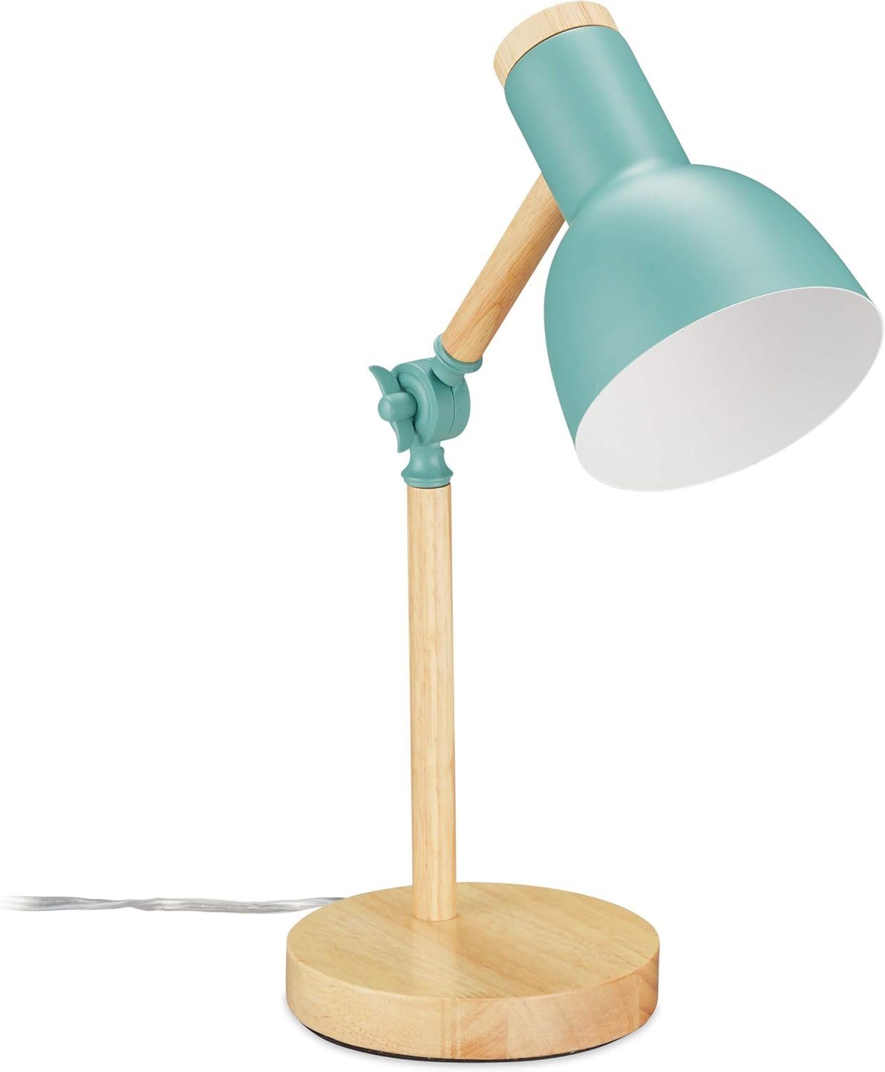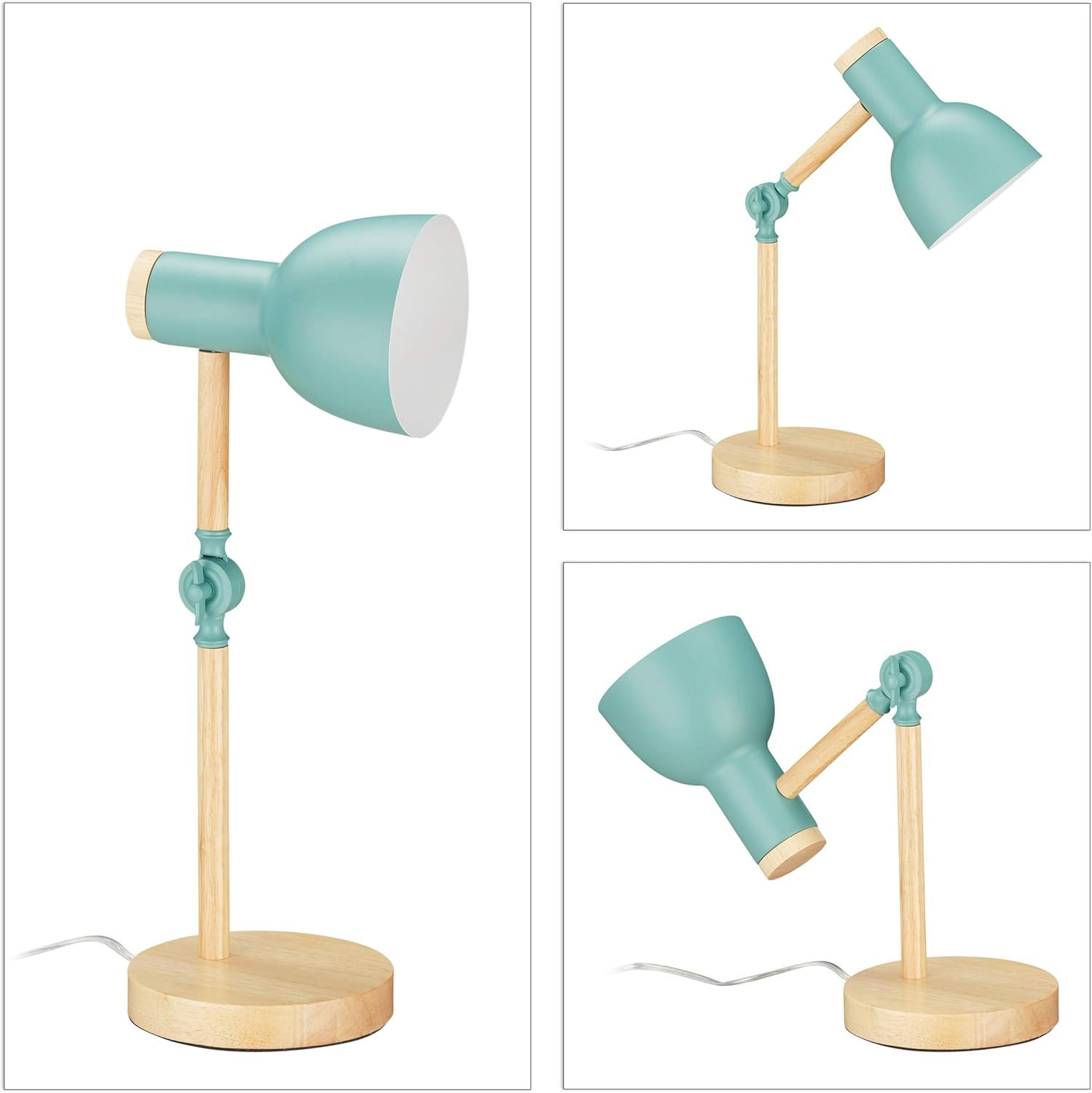 Тази настолна лампа комбинира дърво и метал в ретро стил. Има регулируем ъгъл и височина, което позволява да насочите светлината според нуждите.