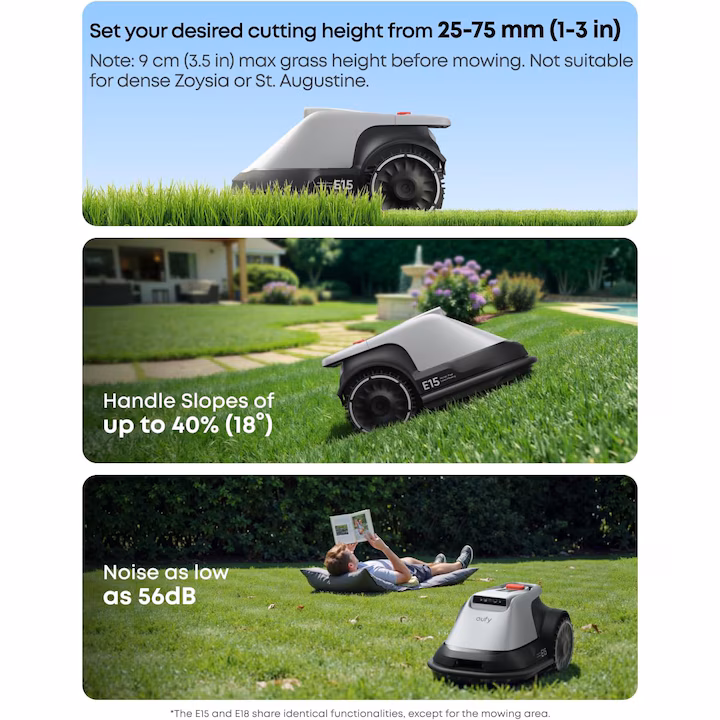Роботизираната косачка E15 е интелигентно решение за автоматична поддръжка на тревни площи.