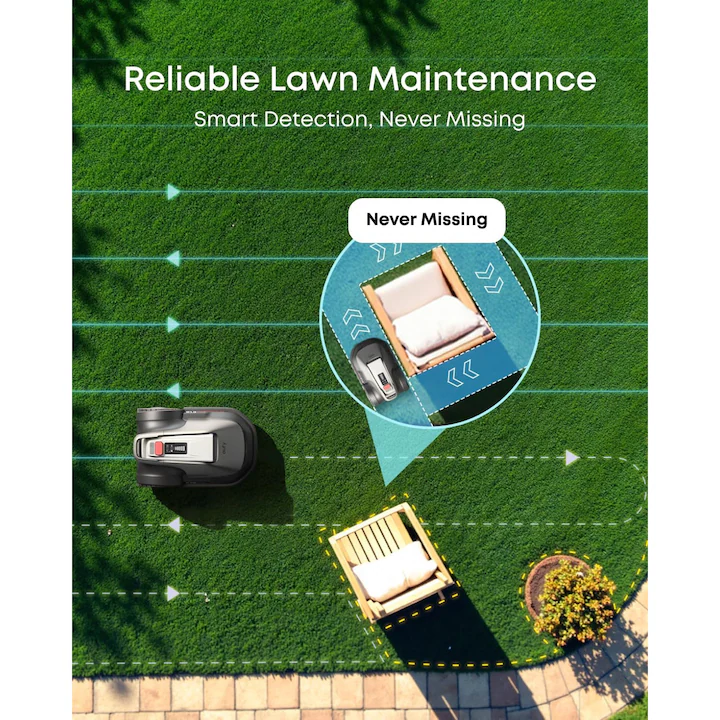 Моделът разполага с 3D система за разпознаване на препятствия, GPS проследяване против кражба и автоматично връщане към зарядната станция. Осигурява равномерно косене и надеждно покритие на площта, като е подходящ за модерни дворове и градини.
