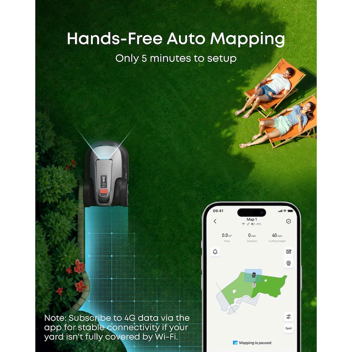 Работи без кабели и RTK станция, използвайки Pure Vision FSD технология с камери и умни алгоритми за точно ориентиране и косене. Чрез мобилно приложение можете лесно да следите картата на двора, маршрута и настройките.