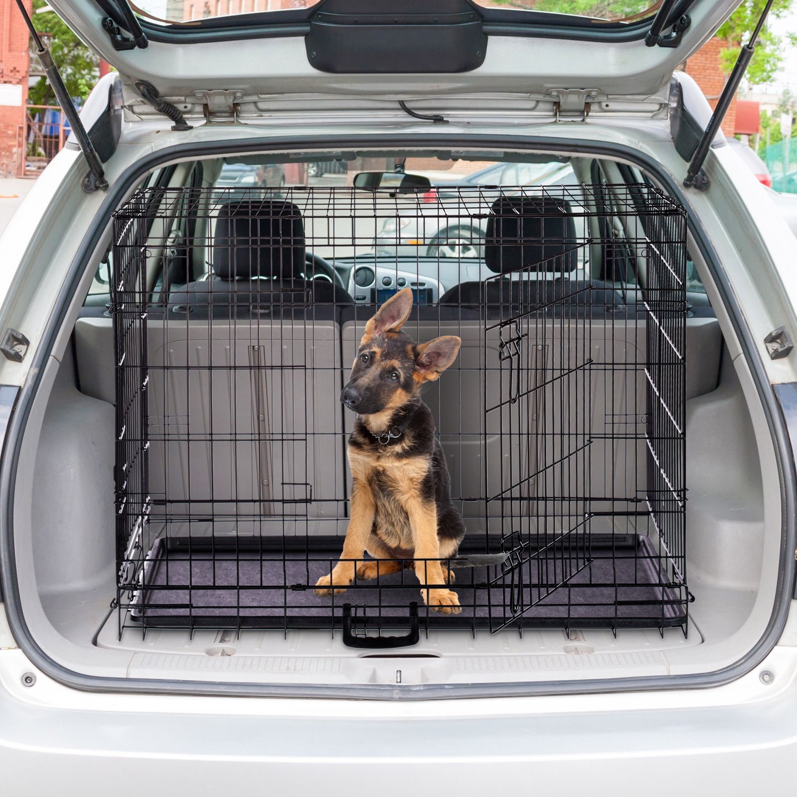 Тази сгъваема клетка за кучета предлага безопасно място за почивка в дома или по време на пътуване. Подходяща е като транспортна клетка за автомобил или като спокойно убежище за кученца у дома.