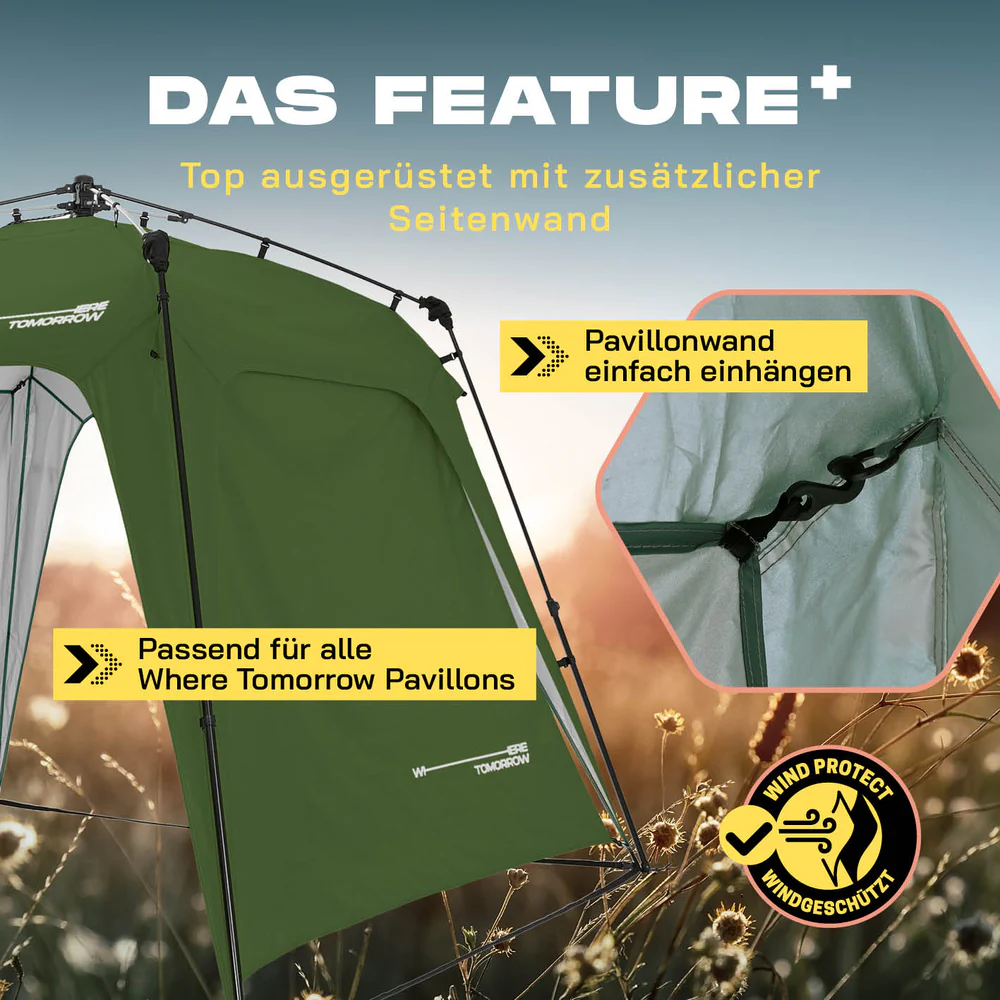 Поп-ъп павилион за градина със странична стена е практично допълнение към шатра Lumaland Where Tomorrow.