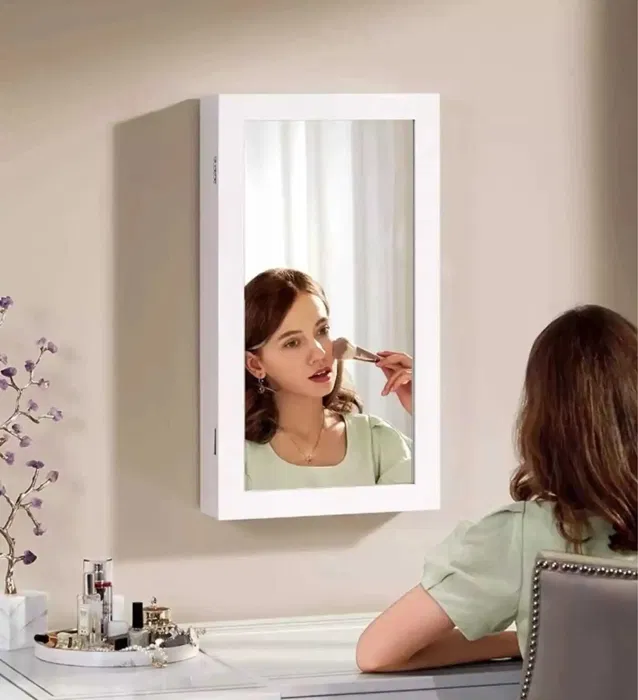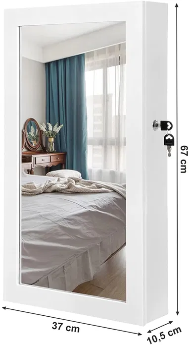 Открийте перфектното решение за съхранение на вашите бижута с този елегантен шкаф с огледало от Songmics. Организирайте безупречно своите скъпоценности и козметика, като същевременно добавите стил към вашата спалня или гардеробна.