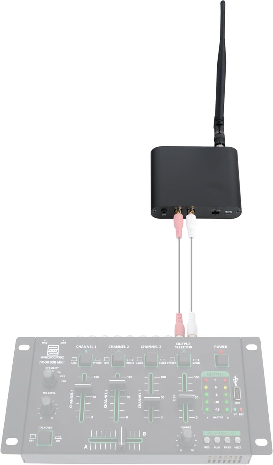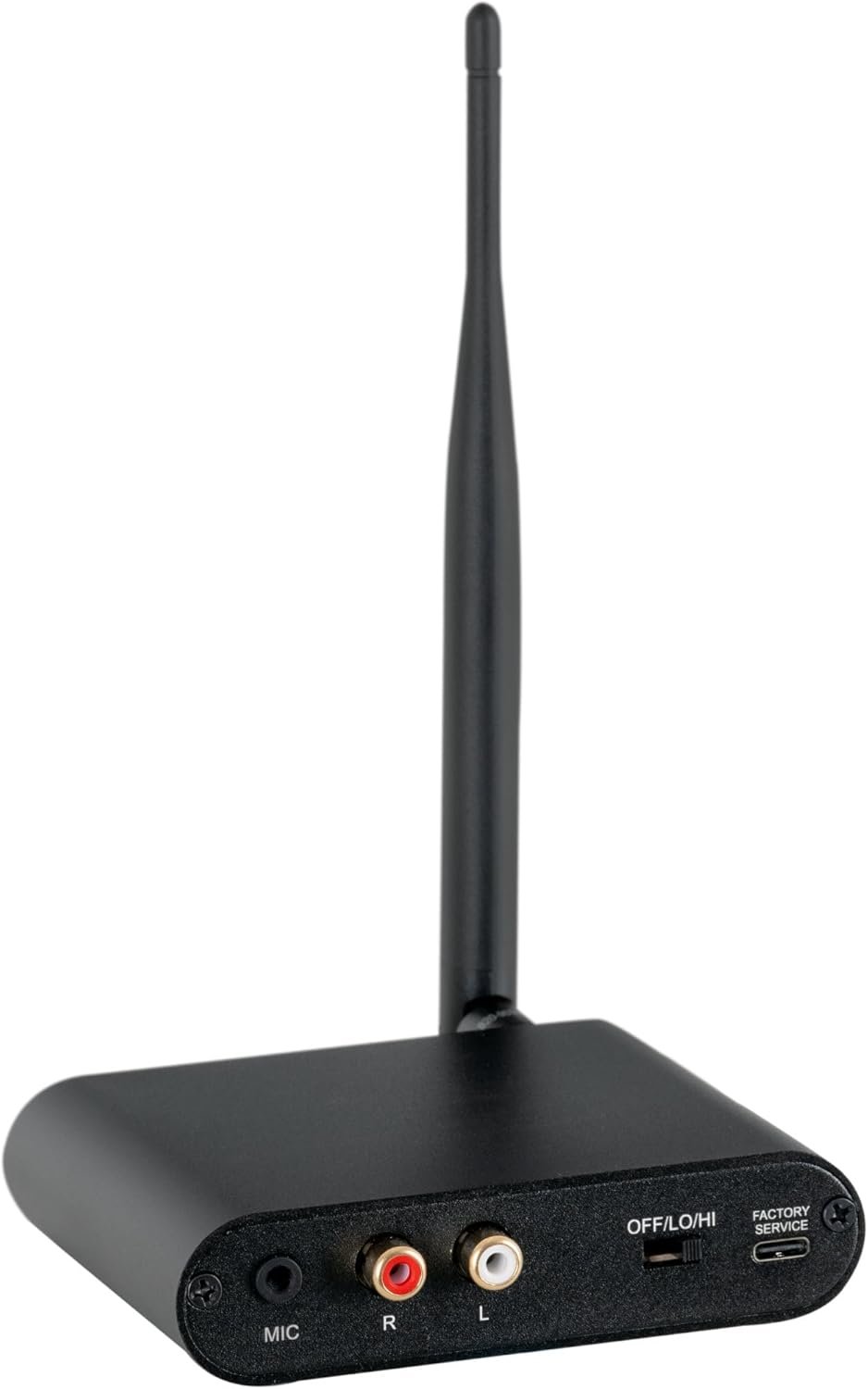 С три канала и честотен диапазон 863 – 865 MHz устройството осигурява надеждна връзка и чист сигнал дори на по-голямо разстояние. Предавателят разполага с вградена батерия 1000 mAh с време на работа около 4 – 5 часа. Металният корпус гарантира здравина и дълготрайност, а външната антена подобрява обхвата на сигнала. Устройството предлага RCA вход за музика и 3.5 mm жак вход за микрофон.