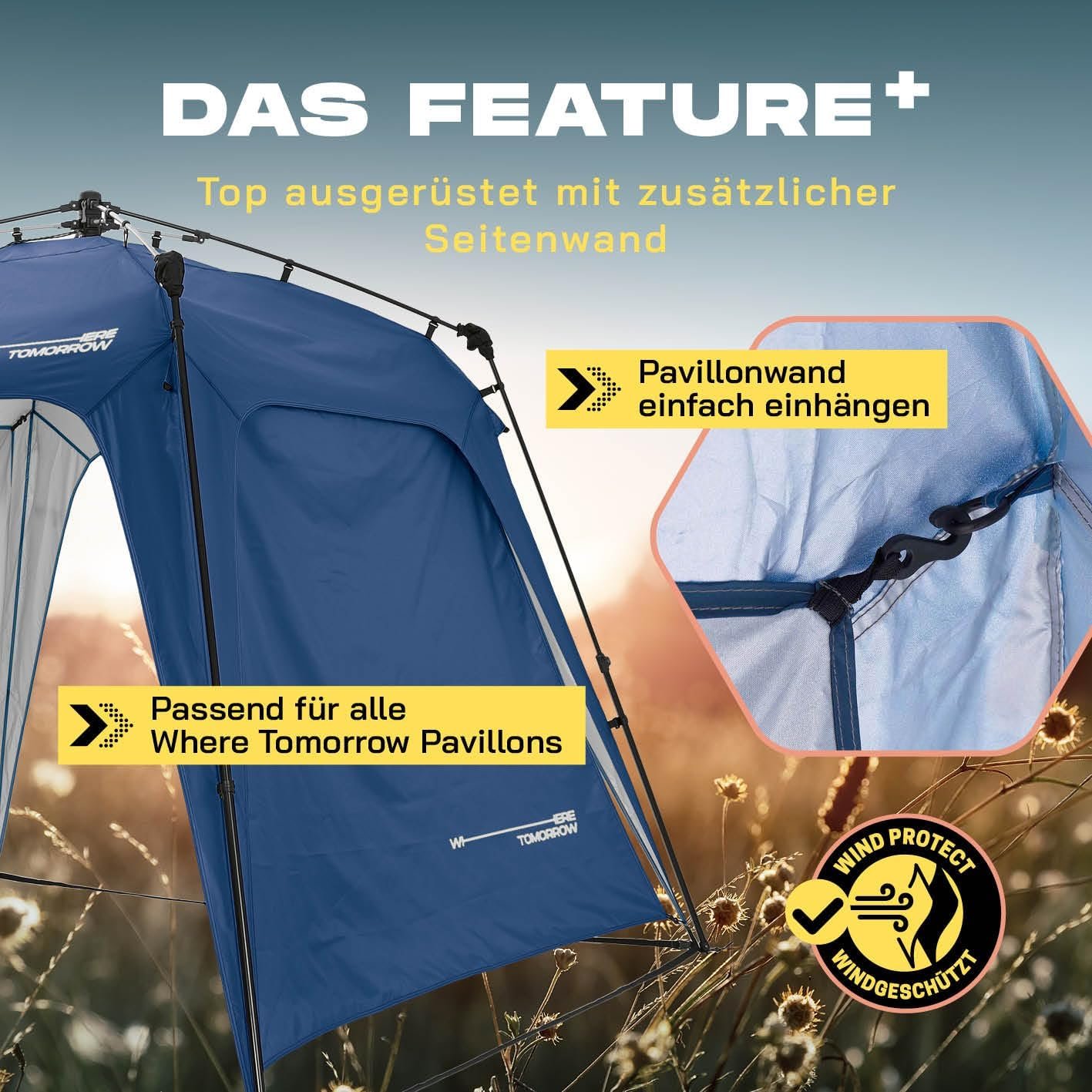 Страничният панел Lumaland е практично допълнение към сгъваеми шатри и градински палатки. Осигурява защита от слънце, вятър и дъжд и създава по-комфортна зона за отдих, къмпинг или събития на открито.