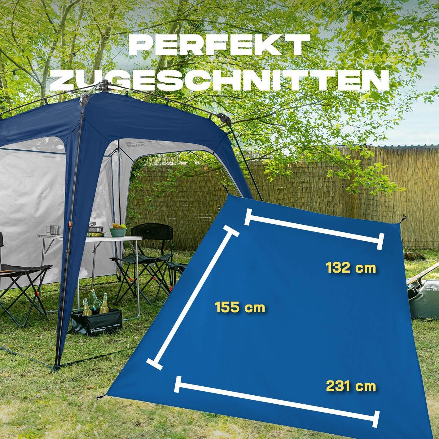 Монтира се лесно с куки към конструкцията на шатъра и може да се постави от всяка страна според нуждите. Възможно е добавяне на няколко странични панели за по-добра защита при променливо време. Материалът е устойчив на атмосферни условия, непрозрачен и бързосъхнещ. Леката, но здрава структура позволява лесно пренасяне и дълготрайна употреба.