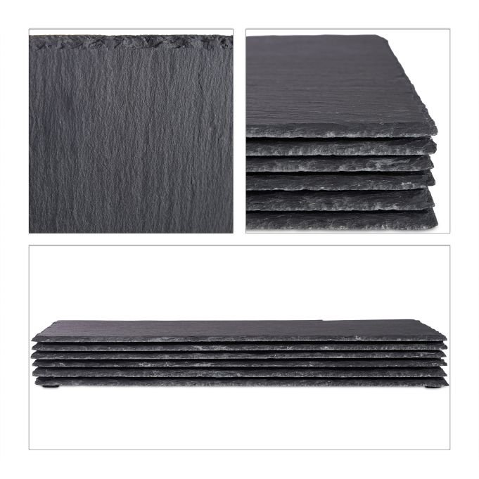 Тези универсални плочи от шисти придават изтънчен вид на всяка трапеза. Комплектът включва 6 броя, подходящи за сервиране на суши, сирена, хляб, плодове, стекове, XL бургери и още.
