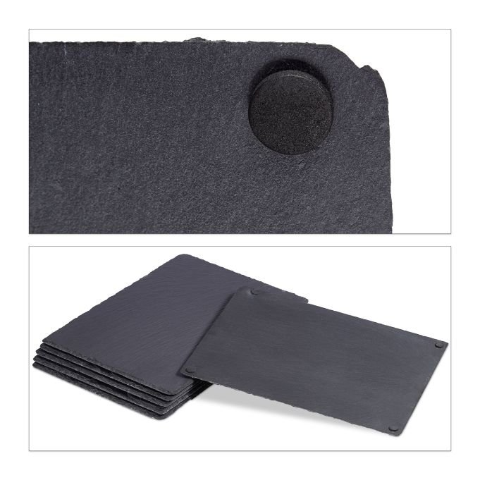Каменните подложки имат филцови крачета против хлъзгане и могат да се използват и като декоративни елементи върху маса с менюта, свещи или надписи. Пишат се лесно с тебешир или металически маркер и са удобни за семейни вечери, партита, рождени дни или сватби. Плочите се измиват на ръка и при желание могат да се омаслят, за да подчертаят естествената текстура на камъка.