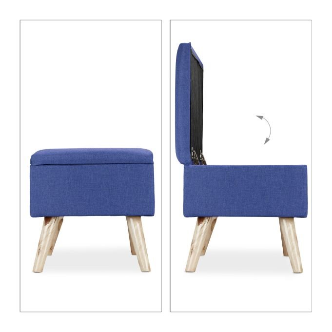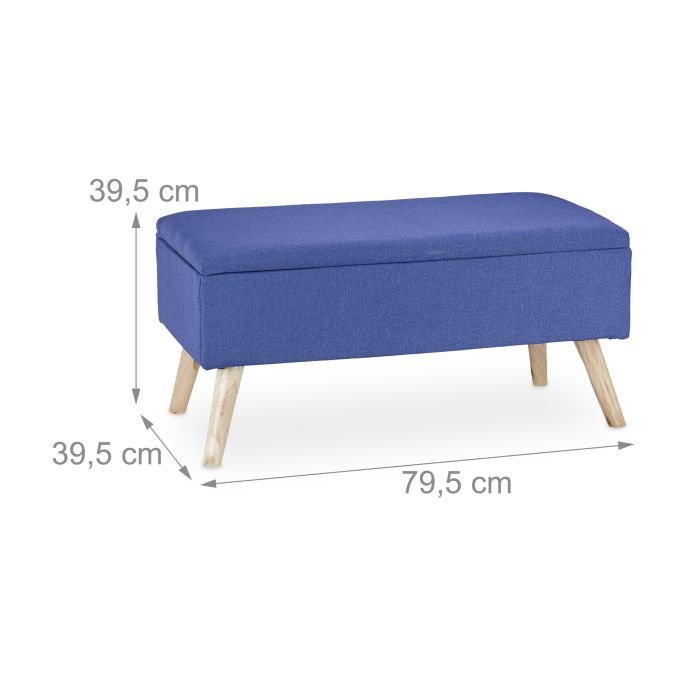 Дървените крака и калъфът с ленен ефект придават елегантен и вечен вид, подходящ за различни интериорни стилове. Капакът с панти се отваря лесно и скрива дискретно съдържанието. Идеална за спалня, хол или коридор.