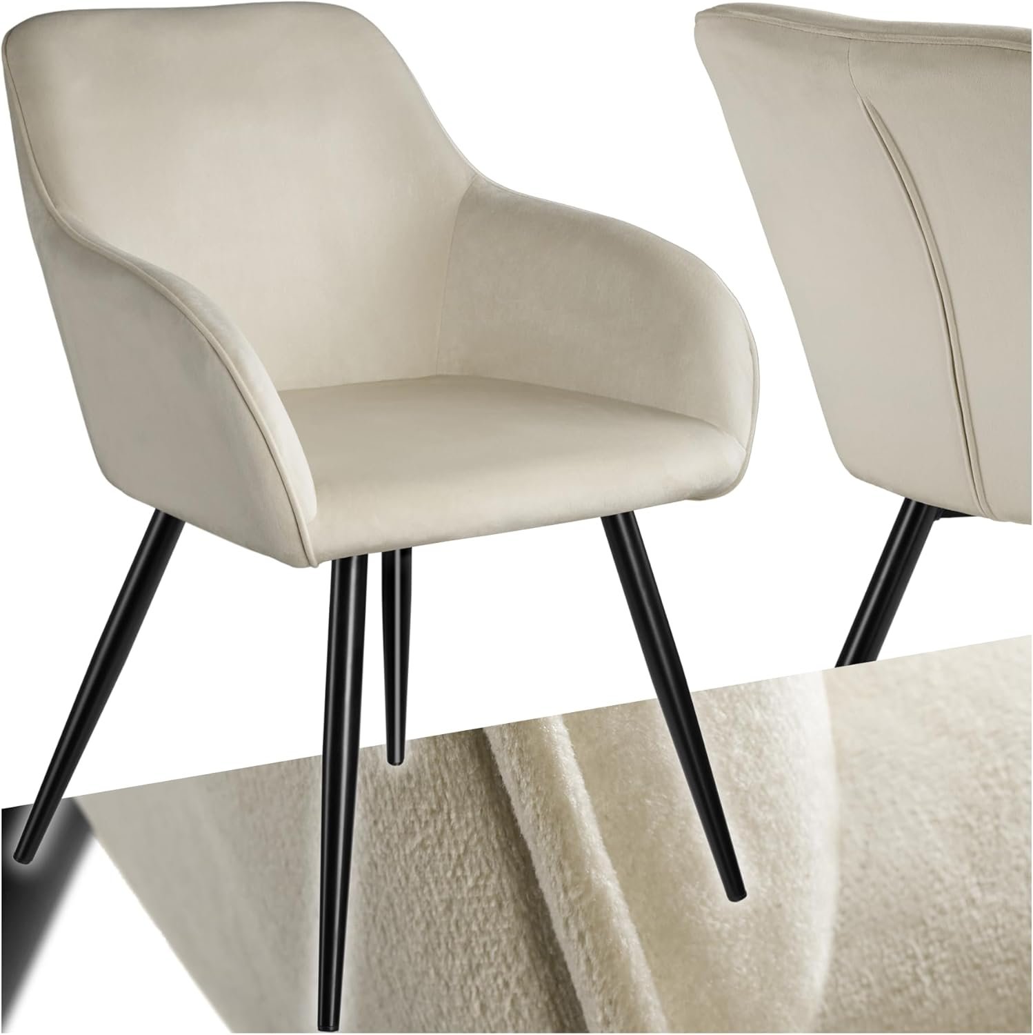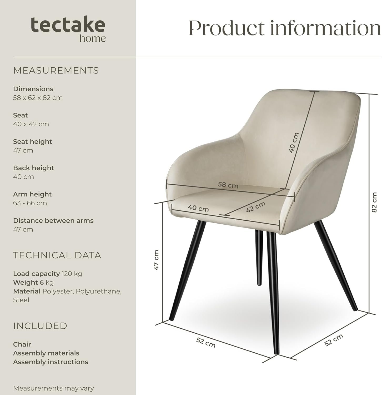 TecTake столът за хранене комбинира елегантен кадифен дизайн и висок комфорт. Меката буклирана тапицерия, дебелата подплата и ергономичната непрекъсната облегалка (Continuous Back) осигуряват удобство при дълго седене.